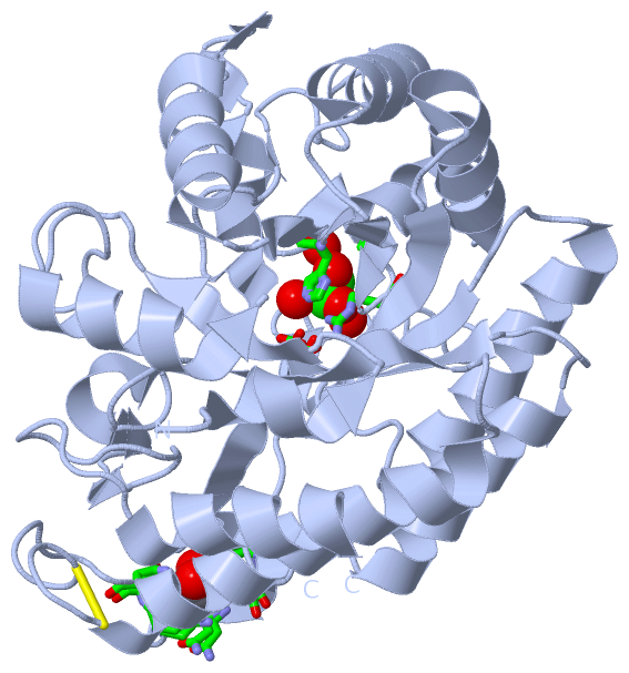 Asymmetric UnitChain A from PDB Type:PROTEIN Length:348 aligned with XYNA_CELJU | P14768 from UniProtKB/Swiss-Prot Length:611 Alignment length:348 272 282 292 302 312 322 332 342 352 362 372 382 392 402 412 422 432 442 452 462 472 482 492 502 512 522 532 542 552 562 572 582 592 602 XYNA_CELJU 263 GNGLASLADFPIGVAVAASGGNADIFTSSARQNIVRAEFNQITAENIMKMSYMYSGSNFSFTNSDRLVSWAAQNGQTVHGHALVWHPSYQLPNWASDSNANFRQDFARHIDTVAAHFAGQVKSWDVVNEALFDSADDPDGRGSANGYRQSVFYRQFGGPEYIDEAFRRARAADPTAELYYNDFNTEENGAKTTALVNLVQRLLNNGVPIDGVGFQMHVMNDYPSIANIRQAMQKIVALSPTLKIKITELDVRLNNPYDGNSSNDYTNRNDCAVSCAGLDRQKARYKEIVQAYLEVVPPGRRGGITVWGIADPDSWLYTHQNLPDWPLLFNDNLQPKPAYQGVVEALSG 610 SCOP domains d1w3ha_ A: Xylanase A, catalytic core SCOP domains CATH domains 1w3hA00 A:-1-346 Glycosidases CATH domains Pfam domains ------------------------------------------------------------------------------------------------------------------------------------------------------------------------------------------------------------------------------------------------------------------------------------------------------------------------------------------------------------ Pfam domains SAPs(SNPs) ------------------------------------------------------------------------------------------------------------------------------------------------------------------------------------------------------------------------------------------------------------------------------------------------------------------------------------------------------------ SAPs(SNPs) PROSITE (1) ------------------GH10_2 PDB: A:17-343 UniProt: 281-607 --- PROSITE (1) PROSITE (2) ------------------------------------------------------------------------------------------------------------------------------------------------------------------------------------------------------------------------------------------------GH10_1 ------------------------------------------------------------------------------------------------- PROSITE (2) Transcript ------------------------------------------------------------------------------------------------------------------------------------------------------------------------------------------------------------------------------------------------------------------------------------------------------------------------------------------------------------ Transcript 1w3h A -1 SPGLASLADFPIGVAVAASGGNADIFTSSARQNIVRAEFNQITAENIMKMSYMYSGSNFSFTNSDRLVSWAAQNGQTVHGHTLVWHPSYQLPNWASDSNANFRQDFARHIDTVAAHFAGQVKSWDVVNEALFDSADDPDGRGSANGYRQSVFYRQFGGPEYIDEAFRRARAADPTAELYYNDFNTEENGAKTTALVNLVQRLLNNGVPIDGVGFQMHVMNDYPSIANIRQAMQKIVALSPTLKIKITELDVRLNNPYDGNSSNNYTNRNDCAVSCAGLDRQKARYKEIVQAYLEVVPPGRRGGITVWGIADPDSWLYTHQNLPDWPLLFNDNLQPKPAYQGVVEALSG 346 8 18 28 38 48 58 68 78 88 98 108 118 128 138 148 158 168 178 188 198 208 218 228 238 248 258 268 278 288 298 308 318 328 338 Chain B from PDB Type:PROTEIN Length:347 aligned with XYNA_CELJU | P14768 from UniProtKB/Swiss-Prot Length:611 Alignment length:347 274 284 294 304 314 324 334 344 354 364 374 384 394 404 414 424 434 444 454 464 474 484 494 504 514 524 534 544 554 564 574 584 594 604 XYNA_CELJU 265 GLASLADFPIGVAVAASGGNADIFTSSARQNIVRAEFNQITAENIMKMSYMYSGSNFSFTNSDRLVSWAAQNGQTVHGHALVWHPSYQLPNWASDSNANFRQDFARHIDTVAAHFAGQVKSWDVVNEALFDSADDPDGRGSANGYRQSVFYRQFGGPEYIDEAFRRARAADPTAELYYNDFNTEENGAKTTALVNLVQRLLNNGVPIDGVGFQMHVMNDYPSIANIRQAMQKIVALSPTLKIKITELDVRLNNPYDGNSSNDYTNRNDCAVSCAGLDRQKARYKEIVQAYLEVVPPGRRGGITVWGIADPDSWLYTHQNLPDWPLLFNDNLQPKPAYQGVVEALSGR 611 SCOP domains d1w3hb_ B: Xylanase A, catalytic core SCOP domains CATH domains 1w3hB00 B:1-347 Glycosidases CATH domains Pfam domains (1) Glyco_hydro_10-1w3hB01 B:1-344 --- Pfam domains (1) Pfam domains (2) Glyco_hydro_10-1w3hB02 B:1-344 --- Pfam domains (2) SAPs(SNPs) ----------------------------------------------------------------------------------------------------------------------------------------------------------------------------------------------------------------------------------------------------------------------------------------------------------------------------------------------------------- SAPs(SNPs) PROSITE (1) ----------------GH10_2 PDB: B:17-343 UniProt: 281-607 ---- PROSITE (1) PROSITE (2) ----------------------------------------------------------------------------------------------------------------------------------------------------------------------------------------------------------------------------------------------GH10_1 -------------------------------------------------------------------------------------------------- PROSITE (2) Transcript ----------------------------------------------------------------------------------------------------------------------------------------------------------------------------------------------------------------------------------------------------------------------------------------------------------------------------------------------------------- Transcript 1w3h B 1 GLASLADFPIGVAVAASGGNADIFTSSARQNIVRAEFNQITAENIMKMSYMYSGSNFSFTNSDRLVSWAAQNGQTVHGHTLVWHPSYQLPNWASDSNANFRQDFARHIDTVAAHFAGQVKSWDVVNEALFDSADDPDGRGSANGYRQSVFYRQFGGPEYIDEAFRRARAADPTAELYYNDFNTEENGAKTTALVNLVQRLLNNGVPIDGVGFQMHVMNDYPSIANIRQAMQKIVALSPTLKIKITELDVRLNNPYDGNSSNNYTNRNDCAVSCAGLDRQKARYKEIVQAYLEVVPPGRRGGITVWGIADPDSWLYTHQNLPDWPLLFNDNLQPKPAYQGVVEALSGR 347 10 20 30 40 50 60 70 80 90 100 110 120 130 140 150 160 170 180 190 200 210 220 230 240 250 260 270 280 290 300 310 320 330 340