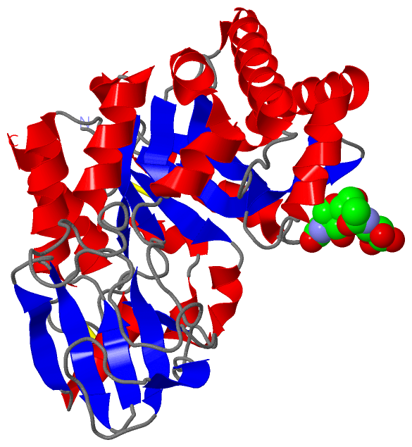 | | GO:0030246 | | carbohydrate binding | | Interacting selectively and non-covalently with any carbohydrate, which includes monosaccharides, oligosaccharides and polysaccharides as well as substances derived from monosaccharides by reduction of the carbonyl group (alditols), by oxidation of one or more hydroxy groups to afford the corresponding aldehydes, ketones, or carboxylic acids, or by replacement of one or more hydroxy group(s) by a hydrogen atom. Cyclitols are generally not regarded as carbohydrates. |