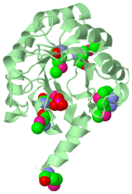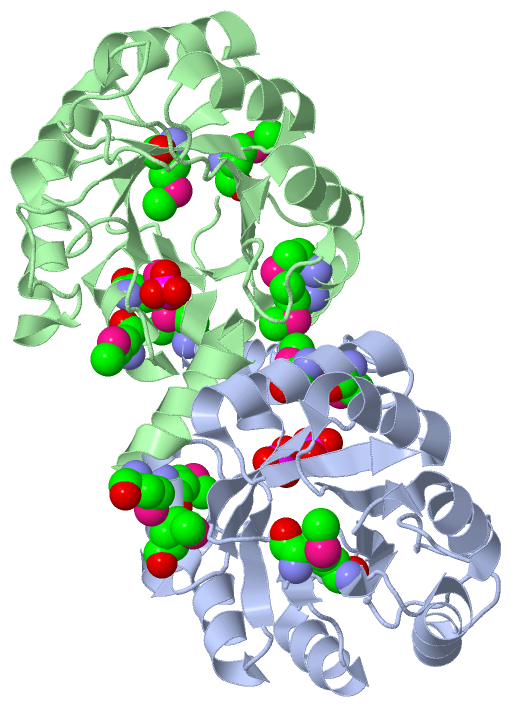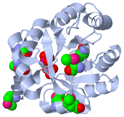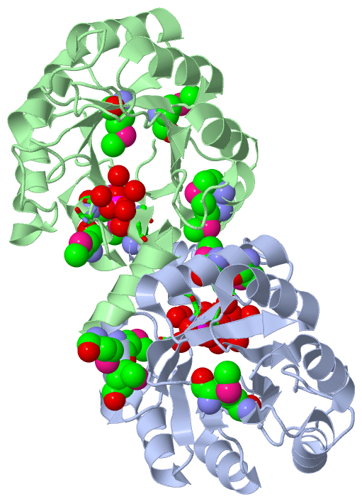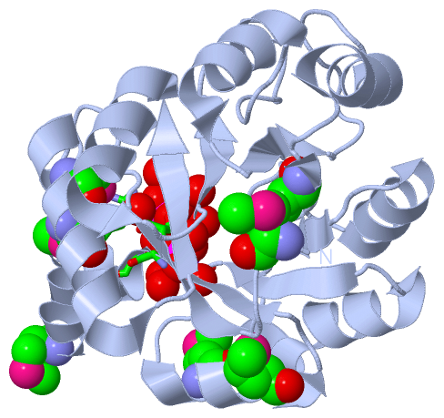 Asymmetric UnitChain A from PDB Type:PROTEIN Length:222 aligned with NANE_STAAN | P65517 from UniProtKB/Swiss-Prot Length:222 Alignment length:222 1 | 9 19 29 39 49 59 69 79 89 99 109 119 129 139 149 159 169 179 189 199 209 219 NANE_STAAN - -MLPHGLIVSCQALADEPLHSSFIMSKMALAAYEGGAVGIRANTKEDILAIKETVDLPVIGIVKRDYDHSDVFITATSKEVDELIESQCEVIALDATLQQRPKETLDELVSYIRTHAPNVEIMADIATVEEAKNAARLGFDYIGTTLHGYTSYTQGQLLYQNDFQFLKDVLQSVDAKVIAEGNVITPDMYKRVMDLGVHCSVVGGAITRPKEITKRFVQVME 221 SCOP domains d1y0ea_ A: Putative N-acetylmannosamine-6-phosphate 2-epimerase NanE SCOP domains CATH domains 1y0eA00 A:0-221 Aldolase class I CATH domains Pfam domains ------------------------------------------------------------------------------------------------------------------------------------------------------------------------------------------------------------------------------ Pfam domains SAPs(SNPs) ------------------------------------------------------------------------------------------------------------------------------------------------------------------------------------------------------------------------------ SAPs(SNPs) PROSITE ------------------------------------------------------------------------------------------------------------------------------------------------------------------------------------------------------------------------------ PROSITE Transcript ------------------------------------------------------------------------------------------------------------------------------------------------------------------------------------------------------------------------------ Transcript 1y0e A 0 AmLPHGLIVSCQALPDEPLHSSFImSKmALAAYEGGAVGIRANTKEDILAIKETVDLPVIGIVKRDYDHSDVFITATSKEVDELIESQCEVIALDATLQQRPKETLDELVSYIRTHAPNVEImADIATVEEAKNAARLGFDYIGTTLHGYTSYTQGQLLYQNDFQFLKDVLQSVDAKVIAEGNVITPDmYKRVmDLGVHCSVVGGAITRPKEITKRFVQVmE 221 | 9 19 | |29 39 49 59 69 79 89 99 109 119 | 129 139 149 159 169 179 189 | 199 209 219| | 24-MSE 122-MSE 188-MSE| 220-MSE 1-MSE 27-MSE 193-MSE Chain B from PDB Type:PROTEIN Length:222 aligned with NANE_STAAN | P65517 from UniProtKB/Swiss-Prot Length:222 Alignment length:222 1 | 9 19 29 39 49 59 69 79 89 99 109 119 129 139 149 159 169 179 189 199 209 219 NANE_STAAN - -MLPHGLIVSCQALADEPLHSSFIMSKMALAAYEGGAVGIRANTKEDILAIKETVDLPVIGIVKRDYDHSDVFITATSKEVDELIESQCEVIALDATLQQRPKETLDELVSYIRTHAPNVEIMADIATVEEAKNAARLGFDYIGTTLHGYTSYTQGQLLYQNDFQFLKDVLQSVDAKVIAEGNVITPDMYKRVMDLGVHCSVVGGAITRPKEITKRFVQVME 221 SCOP domains d1y0eb_ B: Putative N-acetylmannosamine-6-phosphate 2-epimerase NanE SCOP domains CATH domains 1y0eB00 B:0-221 Aldolase class I CATH domains Pfam domains (1) ------------------------NanE-1y0eB01 B:24-221 Pfam domains (1) Pfam domains (2) ------------------------NanE-1y0eB02 B:24-221 Pfam domains (2) SAPs(SNPs) ------------------------------------------------------------------------------------------------------------------------------------------------------------------------------------------------------------------------------ SAPs(SNPs) PROSITE ------------------------------------------------------------------------------------------------------------------------------------------------------------------------------------------------------------------------------ PROSITE Transcript ------------------------------------------------------------------------------------------------------------------------------------------------------------------------------------------------------------------------------ Transcript 1y0e B 0 AmLPHGLIVSCQALPDEPLHSSFImSKmALAAYEGGAVGIRANTKEDILAIKETVDLPVIGIVKRDYDHSDVFITATSKEVDELIESQCEVIALDATLQQRPKETLDELVSYIRTHAPNVEImADIATVEEAKNAARLGFDYIGTTLHGYTSYTQGQLLYQNDFQFLKDVLQSVDAKVIAEGNVITPDmYKRVmDLGVHCSVVGGAITRPKEITKRFVQVmE 221 | 9 19 | |29 39 49 59 69 79 89 99 109 119 | 129 139 149 159 169 179 189 | 199 209 219| | 24-MSE 122-MSE 188-MSE| 220-MSE 1-MSE 27-MSE 193-MSE