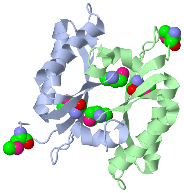 Asymmetric UnitChain A from PDB Type:PROTEIN Length:104 aligned with Q81IG4_BACCR | Q81IG4 from UniProtKB/TrEMBL Length:106 Alignment length:104 1 | 7 17 27 37 47 57 67 77 87 97 Q81IG4_BACCR - ---MSQQVTMSFSVVPQAKTKDVYSVVDKAIEVVQQSGVRYEVGAMETTLEGELDVLLDVVKRAQQACVDAGAEEVITSIKIHYRPSTGVTIDEKVWKYRDEYA 101 SCOP domains ---d1yqha1 A:1-101 Hypothetical protein BC0424 SCOP domains CATH domains 1yqhA00 A:-2-101 [code=3.30.70.930, no name defined] CATH domains Pfam domains -------------------------------------------------------------------------------------------------------- Pfam domains SAPs(SNPs) -------------------------------------------------------------------------------------------------------- SAPs(SNPs) PROSITE -------------------------------------------------------------------------------------------------------- PROSITE Transcript -------------------------------------------------------------------------------------------------------- Transcript 1yqh A -2 SNAmSQQVTmSFSVVPQAKTKDVYSVVDKAIEVVQQSGVRYEVGAmETTLEGELDVLLDVVKRAQQACVDAGAEEVITSIKIHYRPSTGVTIDEKVWKYRDEYA 101 | 7 17 27 37 | 47 57 67 77 87 97 | 7-MSE 43-MSE 1-MSE Chain B from PDB Type:PROTEIN Length:101 aligned with Q81IG4_BACCR | Q81IG4 from UniProtKB/TrEMBL Length:106 Alignment length:101 10 20 30 40 50 60 70 80 90 100 Q81IG4_BACCR 1 MSQQVTMSFSVVPQAKTKDVYSVVDKAIEVVQQSGVRYEVGAMETTLEGELDVLLDVVKRAQQACVDAGAEEVITSIKIHYRPSTGVTIDEKVWKYRDEYA 101 SCOP domains d1yqhb_ B: automated matches SCOP domains CATH domains -1yqhB00 B:2-101 [code=3.30.70.930, no name defined] CATH domains Pfam domains (1) ------DUF77-1yqhB01 B:7-97 ---- Pfam domains (1) Pfam domains (2) ------DUF77-1yqhB02 B:7-97 ---- Pfam domains (2) SAPs(SNPs) ----------------------------------------------------------------------------------------------------- SAPs(SNPs) PROSITE ----------------------------------------------------------------------------------------------------- PROSITE Transcript ----------------------------------------------------------------------------------------------------- Transcript 1yqh B 1 mSQQVTmSFSVVPQAKTKDVYSVVDKAIEVVQQSGVRYEVGAmETTLEGELDVLLDVVKRAQQACVDAGAEEVITSIKIHYRPSTGVTIDEKVWKYRDEYA 101 | | 10 20 30 40 | 50 60 70 80 90 100 1-MSE 7-MSE 43-MSE