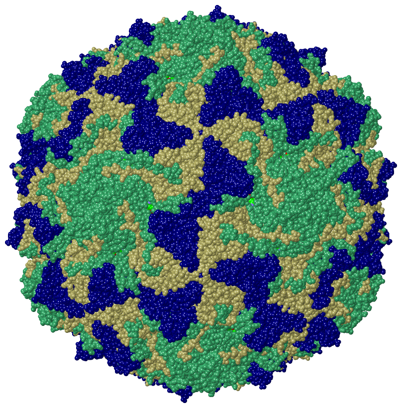 | | GO:0039618 | | T=pseudo3 icosahedral viral capsid | | The protein coat that surrounds the infective nucleic acid in some virus particles where the subunits (capsomeres) are arranged to form an icosahedron with pseudo T=3 symmetry. The T=pseudo3 capsid is composed of 12 pentameric and 20 hexameric capsomeres. |