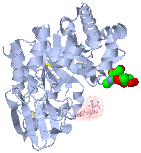 | | GO:0030246 | | carbohydrate binding | | Interacting selectively and non-covalently with any carbohydrate, which includes monosaccharides, oligosaccharides and polysaccharides as well as substances derived from monosaccharides by reduction of the carbonyl group (alditols), by oxidation of one or more hydroxy groups to afford the corresponding aldehydes, ketones, or carboxylic acids, or by replacement of one or more hydroxy group(s) by a hydrogen atom. Cyclitols are generally not regarded as carbohydrates. |