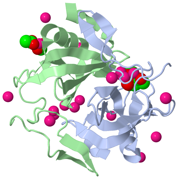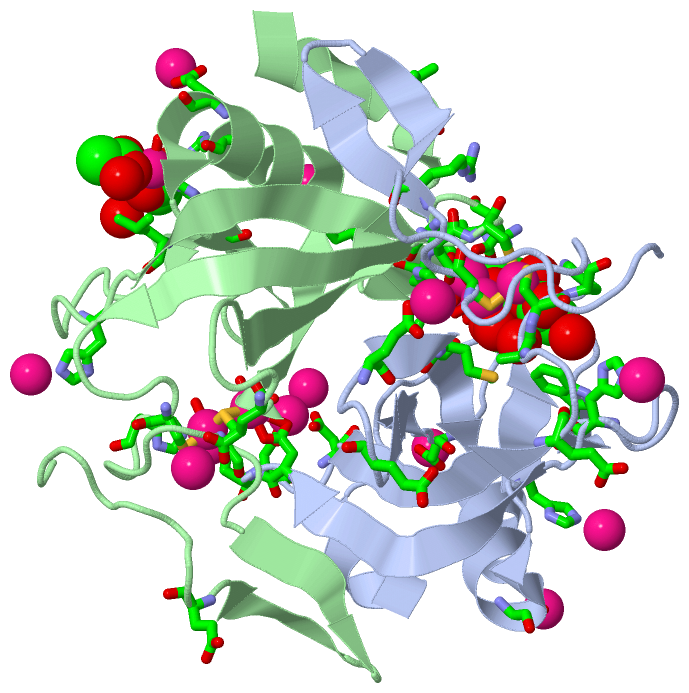 | 15 | BC6 | SOFTWARE | GLU B:21 , HOH B:612 , HOH B:613 | BINDING SITE FOR RESIDUE CD B 2615 |