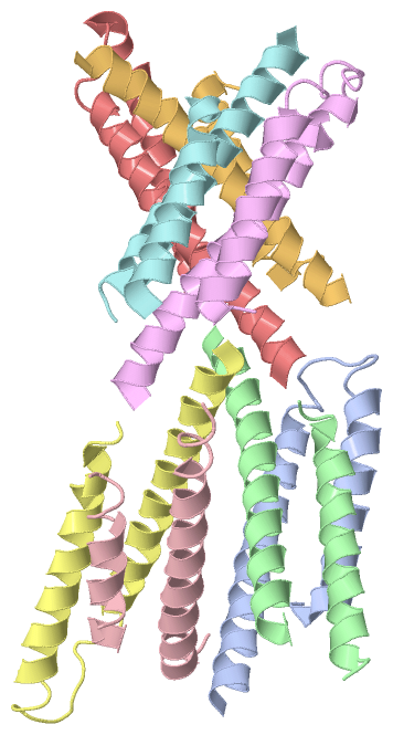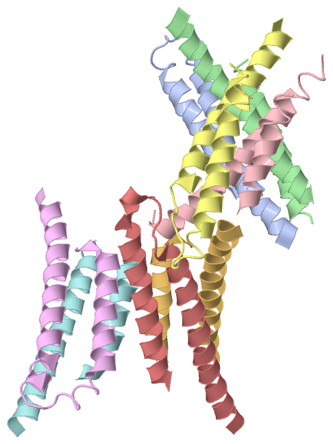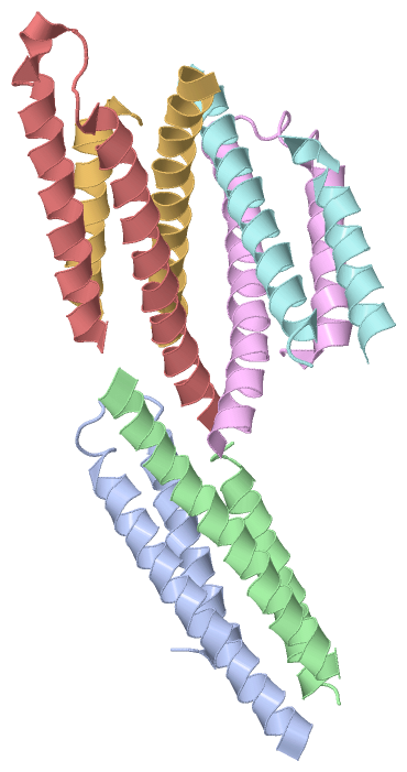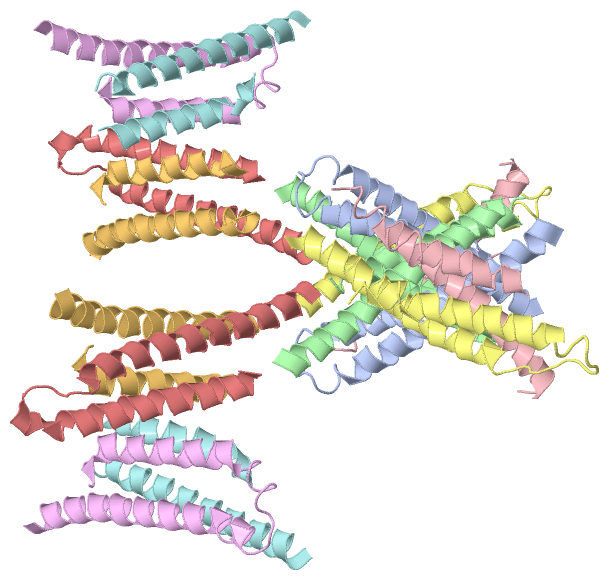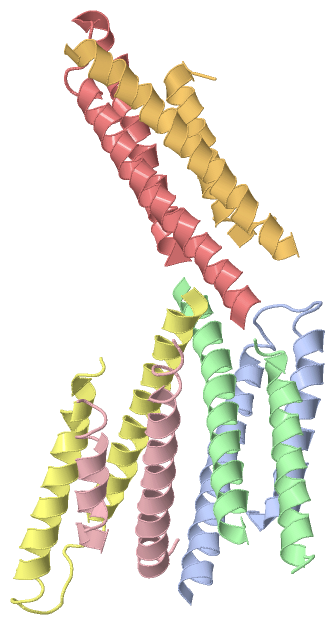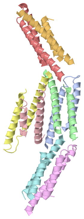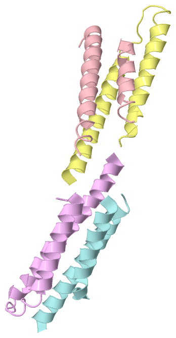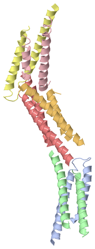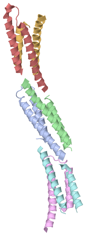 Asymmetric UnitChain A from PDB Type:PROTEIN Length:65 aligned with O68692_YERPE | O68692 from UniProtKB/TrEMBL Length:66 Alignment length:65 10 20 30 40 50 60 O68692_YERPE 1 MTQLEEQLHNVETVRSITMQLEMALTKLKKDMMRGGDAKQYQVWQRESKALESAIAIIHYVAGDL 65 SCOP domains ----------------------------------------------------------------- SCOP domains CATH domains ----------------------------------------------------------------- CATH domains Pfam domains ----------------------------------------------------------------- Pfam domains SAPs(SNPs) ----------------------------------------------------------------- SAPs(SNPs) PROSITE ----------------------------------------------------------------- PROSITE Transcript ----------------------------------------------------------------- Transcript 1zw0 A 1 MTQLEEQLHNVETVRSITMQLEMALTKLKKDMMRGGDAKQYQVWQRESKALESAIAIIHYVAGDL 65 10 20 30 40 50 60 Chain B from PDB Type:PROTEIN Length:59 aligned with O68692_YERPE | O68692 from UniProtKB/TrEMBL Length:66 Alignment length:66 10 20 30 40 50 60 O68692_YERPE 1 MTQLEEQLHNVETVRSITMQLEMALTKLKKDMMRGGDAKQYQVWQRESKALESAIAIIHYVAGDLK 66 SCOP domains ------------------------------------------------------------------ SCOP domains CATH domains ------------------------------------------------------------------ CATH domains Pfam domains ------------------------------------------------------------------ Pfam domains SAPs(SNPs) ------------------------------------------------------------------ SAPs(SNPs) PROSITE ------------------------------------------------------------------ PROSITE Transcript ------------------------------------------------------------------ Transcript 1zw0 B 1 MTQLEEQLHNVETVRSITMQLEMALTKLKKDMM-------YQVWQRESKALESAIAIIHYVAGDLK 66 10 20 30 | -| 50 60 33 41 Chain C from PDB Type:PROTEIN Length:52 aligned with O68692_YERPE | O68692 from UniProtKB/TrEMBL Length:66 Alignment length:58 10 20 30 40 50 O68692_YERPE 1 MTQLEEQLHNVETVRSITMQLEMALTKLKKDMMRGGDAKQYQVWQRESKALESAIAII 58 SCOP domains ---------------------------------------------------------- SCOP domains CATH domains ---------------------------------------------------------- CATH domains Pfam domains ---------------------------------------------------------- Pfam domains SAPs(SNPs) ---------------------------------------------------------- SAPs(SNPs) PROSITE ---------------------------------------------------------- PROSITE Transcript ---------------------------------------------------------- Transcript 1zw0 C 1 MTQLEEQLHNVETVRSITMQLEMALTKLKKDMMRG------QVWQRESKALESAIAII 58 10 20 30 | - | 50 35 42 Chain D from PDB Type:PROTEIN Length:66 aligned with O68692_YERPE | O68692 from UniProtKB/TrEMBL Length:66 Alignment length:66 10 20 30 40 50 60 O68692_YERPE 1 MTQLEEQLHNVETVRSITMQLEMALTKLKKDMMRGGDAKQYQVWQRESKALESAIAIIHYVAGDLK 66 SCOP domains ------------------------------------------------------------------ SCOP domains CATH domains ------------------------------------------------------------------ CATH domains Pfam domains ------------------------------------------------------------------ Pfam domains SAPs(SNPs) ------------------------------------------------------------------ SAPs(SNPs) PROSITE ------------------------------------------------------------------ PROSITE Transcript ------------------------------------------------------------------ Transcript 1zw0 D 1 MTQLEEQLHNVETVRSITMQLEMALTKLKKDMMRGGDAKQYQVWQRESKALESAIAIIHYVAGDLK 66 10 20 30 40 50 60 Chain E from PDB Type:PROTEIN Length:65 aligned with O68692_YERPE | O68692 from UniProtKB/TrEMBL Length:66 Alignment length:65 10 20 30 40 50 60 O68692_YERPE 1 MTQLEEQLHNVETVRSITMQLEMALTKLKKDMMRGGDAKQYQVWQRESKALESAIAIIHYVAGDL 65 SCOP domains ----------------------------------------------------------------- SCOP domains CATH domains ----------------------------------------------------------------- CATH domains Pfam domains ----------------------------------------------------------------- Pfam domains SAPs(SNPs) ----------------------------------------------------------------- SAPs(SNPs) PROSITE ----------------------------------------------------------------- PROSITE Transcript ----------------------------------------------------------------- Transcript 1zw0 E 1 MTQLEEQLHNVETVRSITMQLEMALTKLKKDMMRGGDAKQYQVWQRESKALESAIAIIHYVAGDL 65 10 20 30 40 50 60 Chain F from PDB Type:PROTEIN Length:52 aligned with O68692_YERPE | O68692 from UniProtKB/TrEMBL Length:66 Alignment length:66 10 20 30 40 50 60 O68692_YERPE 1 MTQLEEQLHNVETVRSITMQLEMALTKLKKDMMRGGDAKQYQVWQRESKALESAIAIIHYVAGDLK 66 SCOP domains ------------------------------------------------------------------ SCOP domains CATH domains ------------------------------------------------------------------ CATH domains Pfam domains ------------------------------------------------------------------ Pfam domains SAPs(SNPs) ------------------------------------------------------------------ SAPs(SNPs) PROSITE ------------------------------------------------------------------ PROSITE Transcript ------------------------------------------------------------------ Transcript 1zw0 F 1 MTQLEEQLHNVETVRSITMQLEMALTKLKKDM--------------ESKALESAIAIIHYVAGDLK 66 10 20 30 | - | 50 60 32 47 Chain G from PDB Type:PROTEIN Length:54 aligned with O68692_YERPE | O68692 from UniProtKB/TrEMBL Length:66 Alignment length:64 11 21 31 41 51 61 O68692_YERPE 2 TQLEEQLHNVETVRSITMQLEMALTKLKKDMMRGGDAKQYQVWQRESKALESAIAIIHYVAGDL 65 SCOP domains ---------------------------------------------------------------- SCOP domains CATH domains ---------------------------------------------------------------- CATH domains Pfam domains ---------------------------------------------------------------- Pfam domains SAPs(SNPs) ---------------------------------------------------------------- SAPs(SNPs) PROSITE ---------------------------------------------------------------- PROSITE Transcript ---------------------------------------------------------------- Transcript 1zw0 G 2 TQLEEQLHNVETVRSITMQLEMALTKLKKDMM----------WQRESKALESAIAIIHYVAGDL 65 11 21 31 |