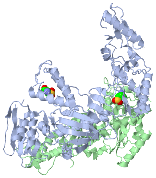 protein, nucleic acid: cartoon; ligands: spacefill; active site: ball and stick