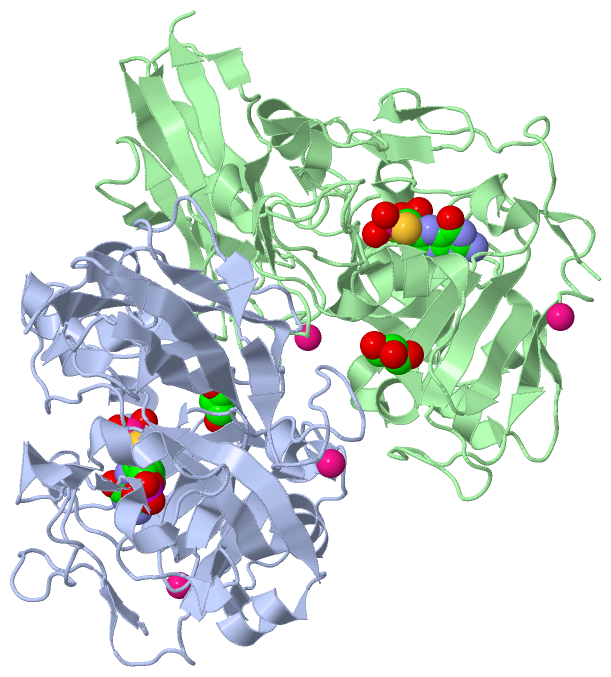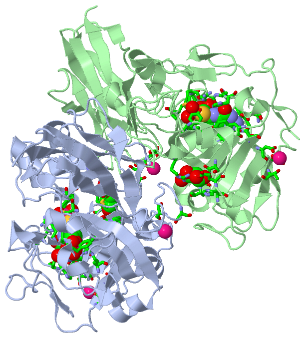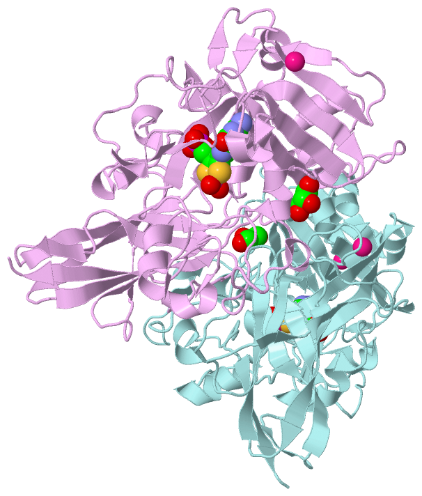 Asymmetric UnitChain A from PDB Type:PROTEIN Length:388 aligned with SUOX_ARATH | Q9S850 from UniProtKB/Swiss-Prot Length:393 Alignment length:388 11 21 31 41 51 61 71 81 91 101 111 121 131 141 151 161 171 181 191 201 211 221 231 241 251 261 271 281 291 301 311 321 331 341 351 361 371 381 SUOX_ARATH 2 PGIRGPSEYSQEPPRHPSLKVNAKEPFNAEPPRSALVSSYVTPVDLFYKRNHGPIPIVDHLQSYSVTLTGLIQNPRKLFIKDIRSLPKYNVTATLQCAGNRRTAMSKVRNVRGVGWDVSAIGNAVWGGAKLADVLELVGIPKLTASTNLGARHVEFVSVDRCKEENGGPYKASITLSQATNPEADVLLAYEMNGETLNRDHGFPLRVVVPGVIGARSVKWLDSINVIAEESQGFFMQKDYKMFPPSVNWDNINWSSRRPQMDFPVQSAICSVEDVQMVKPGKVSIKGYAVSGGGRGIERVDISLDGGKNWVEASRTQEPGKQYISEHSSSDKWAWVLFEATIDVSQTTEVIAKAVDSAANVQPENVESVWNLRGVLNTSWHRVLLRLG 389 SCOP domains d1ogpa2 A:2-262 Sulfite oxidase, middle catalytic domain d1ogpa1 A:263-389 Sulfite oxidase, C-terminal domain SCOP domains CATH domains 1ogpA01 A:2-262 Sulfite Oxidase; Chain A, domain 2 1ogpA02 A:263-389 [code=2.60.40.650, no name defined] CATH domains Pfam domains ---------------------------------------------------------------------------------------------------------------------------------------------------------------------------------------------------------------------------------------------------------------------------------------------------------------------------------------------------------------------------------------------------- Pfam domains SAPs(SNPs) ---------------------------------------------------------------------------------------------------------------------------------------------------------------------------------------------------------------------------------------------------------------------------------------------------------------------------------------------------------------------------------------------------- SAPs(SNPs) PROSITE ---------------------------------------------------------------------------------------------------------------------------------------------------------------------------------------------------------------------------------------------------------------------------------------------------------------------------------------------------------------------------------------------------- PROSITE Transcript ---------------------------------------------------------------------------------------------------------------------------------------------------------------------------------------------------------------------------------------------------------------------------------------------------------------------------------------------------------------------------------------------------- Transcript 1ogp A 2 PGIRGPSEYSQEPPRHPSLKVNAKEPFNAEPPRSALVSSYVTPVDLFYKRNHGPIPIVDHLQSYSVTLTGLIQNPRKLFIKDIRSLPKYNVTATLQCAGNRRTAMSKVRNVRGVGWDVSAIGNAVWGGAKLADVLELVGIPKLTASTNLGARHVEFVSVDRCKEENGGPYKASITLSQATNPEADVLLAYEMNGETLNRDHGFPLRVVVPGVIGARSVKWLDSINVIAEESQGFFMQKDYKMFPPSVNWDNINWSSRRPQMDFPVQSAICSVEDVQMVKPGKVSIKGYAVSGGGRGIERVDISLDGGKNWVEASRTQEPGKQYISEHSSSDKWAWVLFEATIDVSQTTEVIAKAVDSAANVQPENVESVWNLRGVLNTSWHRVLLRLG 389 11 21 31 41 51 61 71 81 91 101 111 121 131 141 151 161 171 181 191 201 211 221 231 241 251 261 271 281 291 301 311 321 331 341 351 361 371 381 Chain B from PDB Type:PROTEIN Length:388 aligned with SUOX_ARATH | Q9S850 from UniProtKB/Swiss-Prot Length:393 Alignment length:388 11 21 31 41 51 61 71 81 91 101 111 121 131 141 151 161 171 181 191 201 211 221 231 241 251 261 271 281 291 301 311 321 331 341 351 361 371 381 SUOX_ARATH 2 PGIRGPSEYSQEPPRHPSLKVNAKEPFNAEPPRSALVSSYVTPVDLFYKRNHGPIPIVDHLQSYSVTLTGLIQNPRKLFIKDIRSLPKYNVTATLQCAGNRRTAMSKVRNVRGVGWDVSAIGNAVWGGAKLADVLELVGIPKLTASTNLGARHVEFVSVDRCKEENGGPYKASITLSQATNPEADVLLAYEMNGETLNRDHGFPLRVVVPGVIGARSVKWLDSINVIAEESQGFFMQKDYKMFPPSVNWDNINWSSRRPQMDFPVQSAICSVEDVQMVKPGKVSIKGYAVSGGGRGIERVDISLDGGKNWVEASRTQEPGKQYISEHSSSDKWAWVLFEATIDVSQTTEVIAKAVDSAANVQPENVESVWNLRGVLNTSWHRVLLRLG 389 SCOP domains d1ogpb2 B:2-262 Sulfite oxidase, middle catalytic domain d1ogpb1 B:263-389 Sulfite oxidase, C-terminal domain SCOP domains CATH domains 1ogpB01 B:2-262 Sulfite Oxidase; Chain A, domain 2 1ogpB02 B:263-389 [code=2.60.40.650, no name defined] CATH domains Pfam domains ---------------------------------------------------------------------------------------------------------------------------------------------------------------------------------------------------------------------------------------------------------------------------------------------------------------------------------------------------------------------------------------------------- Pfam domains SAPs(SNPs) ---------------------------------------------------------------------------------------------------------------------------------------------------------------------------------------------------------------------------------------------------------------------------------------------------------------------------------------------------------------------------------------------------- SAPs(SNPs) PROSITE ---------------------------------------------------------------------------------------------------------------------------------------------------------------------------------------------------------------------------------------------------------------------------------------------------------------------------------------------------------------------------------------------------- PROSITE Transcript ---------------------------------------------------------------------------------------------------------------------------------------------------------------------------------------------------------------------------------------------------------------------------------------------------------------------------------------------------------------------------------------------------- Transcript 1ogp B 2 PGIRGPSEYSQEPPRHPSLKVNAKEPFNAEPPRSALVSSYVTPVDLFYKRNHGPIPIVDHLQSYSVTLTGLIQNPRKLFIKDIRSLPKYNVTATLQCAGNRRTAMSKVRNVRGVGWDVSAIGNAVWGGAKLADVLELVGIPKLTASTNLGARHVEFVSVDRCKEENGGPYKASITLSQATNPEADVLLAYEMNGETLNRDHGFPLRVVVPGVIGARSVKWLDSINVIAEESQGFFMQKDYKMFPPSVNWDN