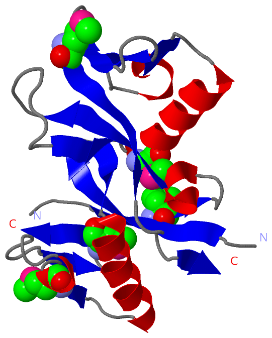 | | GO:0061630 | | ubiquitin protein ligase activity | | Catalysis of the transfer of ubiquitin to a substrate protein via the reaction X-ubiquitin + S -> X + S-ubiquitin, where X is either an E2 or E3 enzyme, the X-ubiquitin linkage is a thioester bond, and the S-ubiquitin linkage is an amide bond: an isopeptide bond between the C-terminal glycine of ubiquitin and the epsilon-amino group of lysine residues in the substrate or, in the linear extension of ubiquitin chains, a peptide bond the between the C-terminal glycine and N-terminal methionine of ubiquitin residues. |