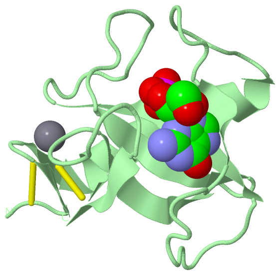 Asymmetric UnitChain A from PDB Type:PROTEIN Length:104 aligned with RNT1_ASPOR | P00651 from UniProtKB/Swiss-Prot Length:130 Alignment length:104 36 46 56 66 76 86 96 106 116 126 RNT1_ASPOR 27 ACDYTCGSNCYSSSDVSTAQAAGYQLHEDGETVGSNSYPHKYNNYEGFDFSVSSPYYEWPILSSGDVYSGGSPGADRVVFNENNQLAGVITHTGASGNNFVECT 130 SCOP domains d2aada_ A: RNase T1 SCOP domains CATH domains 2aadA00 A:1-104 [code=3.10.450.30, no name defined] CATH domains Pfam domains -------------------------------------------------------------------------------------------------------- Pfam domains SAPs(SNPs) -------------------------------------------------------------------------------------------------------- SAPs(SNPs) PROSITE -------------------------------------------------------------------------------------------------------- PROSITE Transcript -------------------------------------------------------------------------------------------------------- Transcript 2aad A 1 ACDYTCGSNCYSSSDVSTAQAAGYKLHEDGETVGSNSYPKKYNNYEGFDFSVSSPYYEWPILSSGDVYSGGSPGADRVVFNENNQLAGVITHTGASGNNFVECT 104 10 20 30 40 50 60 70 80 90 100 Chain B from PDB Type:PROTEIN Length:104 aligned with RNT1_ASPOR | P00651 from UniProtKB/Swiss-Prot Length:130 Alignment length:104 36 46 56 66 76 86 96 106 116 126 RNT1_ASPOR 27 ACDYTCGSNCYSSSDVSTAQAAGYQLHEDGETVGSNSYPHKYNNYEGFDFSVSSPYYEWPILSSGDVYSGGSPGADRVVFNENNQLAGVITHTGASGNNFVECT 130 SCOP domains d2aadb_ B: RNase T1 SCOP domains CATH domains 2aadB00 B:1-104 [code=3.10.450.30, no name defined] CATH domains Pfam domains -------------------------------------------------------------------------------------------------------- Pfam domains SAPs(SNPs) -------------------------------------------------------------------------------------------------------- SAPs(SNPs) PROSITE -------------------------------------------------------------------------------------------------------- PROSITE Transcript -------------------------------------------------------------------------------------------------------- Transcript 2aad B 1 ACDYTCGSNCYSSSDVSTAQAAGYKLHEDGETVGSNSYPKKYNNYEGFDFSVSSPYYEWPILSSGDVYSGGSPGADRVVFNENNQLAGVITHTGASGNNFVECT 104 10 20 30 40 50 60 70 80 90 100