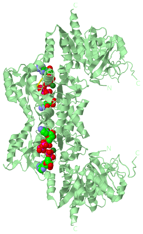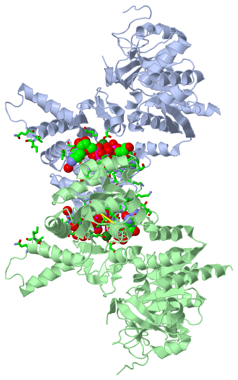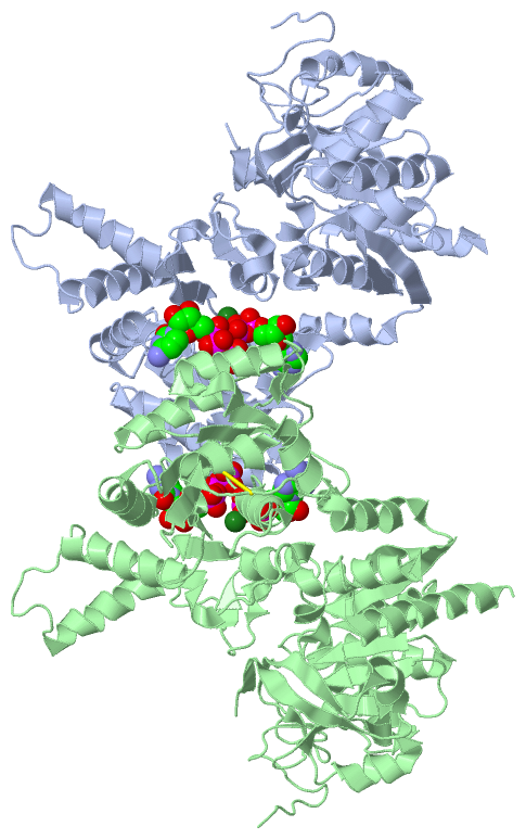 Asymmetric UnitChain A from PDB Type:PROTEIN Length:534 aligned with PYRG_ECOLI | P0A7E5 from UniProtKB/Swiss-Prot Length:545 Alignment length:544 10 20 30 40 50 60 70 80 90 100 110 120 130 140 150 160 170 180 190 200 210 220 230 240 250 260 270 280 290 300 310 320 330 340 350 360 370 380 390 400 410 420 430 440 450 460 470 480 490 500 510 520 530 540 PYRG_ECOLI 1 MTTNYIFVTGGVVSSLGKGIAAASLAAILEARGLNVTIMKLDPYINVDPGTMSPIQHGEVFVTEDGAETDLDLGHYERFIRTKMSRRNNFTTGRIYSDVLRKERRGDYLGATVQVIPHITNAIKERVLEGGEGHDVVLVEIGGTVGDIESLPFLEAIRQMAVEIGREHTLFMHLTLVPYMAASGEVKTKPTQHSVKELLSIGIQPDILICRSDRAVPANERAKIALFCNVPEKAVISLKDVDSIYKIPGLLKSQGLDDYICKRFSLNCPEANLSEWEQVIFEEANPVSEVTIGMVGKYIELPDAYKSVIEALKHGGLKNRVSVNIKLIDSQDVETRGVEILKGLDAILVPGGFGYRGVEGMITTARFARENNIPYLGICLGMQVALIDYARHVANMENANSTEFVPDCKYPVVALITEWRDENGNVEVRSEKSDLGGTMRLGAQQCQLVDDSLVRQLYNAPTIVERHRHRYEVNNMLLKQIEDAGLRVAGRSGDDQLVEIIEVPNHPWFVACQFHPEFTSTPRDGHPLFAGFVKAASEFQKRQA 544 SCOP domains ---------------------------------------------------------------------------------------------------------------------------------------------------------------------------------------------------------------------------------------------------------------------------------------------------------------------------------------------------------------------------------------------------------------------------------------------------------------------------------------------------------------------------------------------------------------- SCOP domains CATH domains 2ad5A01 A:1-285 P-loop containing nucleotide triphosphate hydrolases 2ad5A02 A:286-544 [code=3.40.50.880, no name defined] CATH domains Pfam domains ---------------------------------------------------------------------------------------------------------------------------------------------------------------------------------------------------------------------------------------------------------------------------------------------------------------------------------------------------------------------------------------------------------------------------------------------------------------------------------------------------------------------------------------------------------------- Pfam domains SAPs(SNPs) ---------------------------------------------------------------------------------------------------------------------------------------------------------------------------------------------------------------------------------------------------------------------------------------------------------------------------------------------------------------------------------------------------------------------------------------------------------------------------------------------------------------------------------------------------------------- SAPs(SNPs) PROSITE ---------------------------------------------------------------------------------------------------------------------------------------------------------------------------------------------------------------------------------------------------------------------------------------------------------------------------------------------------------------------------------------------------------------------------------------------------------------------------------------------------------------------------------------------------------------- PROSITE Transcript ---------------------------------------------------------------------------------------------------------------------------------------------------------------------------------------------------------------------------------------------------------------------------------------------------------------------------------------------------------------------------------------------------------------------------------------------------------------------------------------------------------------------------------------------------------------- Transcript 2ad5 A 1 MTTNYIFVTGGVVSSLGKGIAAASLAAILEARGLNVTIMKLDPYINVDPGTMSPIQHGEVFVTEDGAETDLDLGHYERFIRTKMSRRNNFTTGRIYSDVLRKERRGDYLGATVQVIPHITNAIKERVLEGGEGHDVVLVEIGGTVGDIESLPFLEAIRQMAVEIGREHTLFMHLTLVPYMAASGEVKTKPTQHSVKELLSIGIQPDILICRSDRAVPANERAKIALFCNVPEKAVISLKDVDSIYKIPGLLKSQGLDDYICKRFSLNCPEANLSEWEQVIFEEANPVSEVTIGMVGKYIELPDAYKSVIEALKHGGLKNRVSVNIKLIDSQDVETRGVEILKGLDAILVPGGFGYRGVEGMITTARFARENNIPYLGICLGMQVALIDYARHVANMENANSTEFVPDCKYPVVALITEWRDENGNVE----------TMRLGAQQCQLVDDSLVRQLYNAPTIVERHRHRYEVNNMLLKQIEDAGLRVAGRSGDDQLVEIIEVPNHPWFVACQFHPEFTSTPRDGHPLFAGFVKAASEFQKRQA 544 10 20 30 40 50 60 70 80 90 100 110 120 130 140 150 160 170 180 190 200 210 220 230 240 250 260 270 280 290 300 310 320 330 340 350 360 370 380 390 400 410 420 | - 440 450 460 470 480 490 500 510 520 530 540 427 438 Chain B from PDB Type:PROTEIN Length:536 aligned with PYRG_ECOLI | P0A7E5 from UniProtKB/Swiss-Prot Length:545 Alignment length:545 10 20 30 40 50 60 70 80 90 100 110 120 130 140 150 160 170 180 190 200 210 220 230 240 250 260 270 280 290 300 310 320 330 340 350 360 370 380 390 400 410 420 430 440 450 460 470 480 490 500 510 520 530 540 PYRG_ECOLI 1 MTTNYIFVTGGVVSSLGKGIAAASLAAILEARGLNVTIMKLDPYINVDPGTMSPIQHGEVFVTEDGAETDLDLGHYERFIRTKMSRRNNFTTGRIYSDVLRKERRGDYLGATVQVIPHITNAIKERVLEGGEGHDVVLVEIGGTVGDIESLPFLEAIRQMAVEIGREHTLFMHLTLVPYMAASGEVKTKPTQHSVKELLSIGIQPDILICRSDRAVPANERAKIALFCNVPEKAVISLKDVDSIYKIPGLLKSQGLDDYICKRFSLNCPEANLSEWEQVIFEEANPVSEVTIGMVGKYIELPDAYKSVIEALKHGGLKNRVSVNIKLIDSQDVETRGVEILKGLDAILVPGGFGYRGVEGMITTARFARENNIPYLGICLGMQVALIDYARHVANMENANSTEFVPDCKYPVVALITEWRDENGNVEVRSEKSDLGGTMRLGAQQCQLVDDSLVRQLYNAPTIVERHRHRYEVNNMLLKQIEDAGLRVAGRSGDDQLVEIIEVPNHPWFVACQFHPEFTSTPRDGHPLFAGFVKAASEFQKRQAK 545 SCOP domains --------------------------------------------------------------------------------------------------------------------------------------------------------------------------------------------------------------------------------------------------------------------------------------------------------------------------------------------------------------------------------------------------------------------------