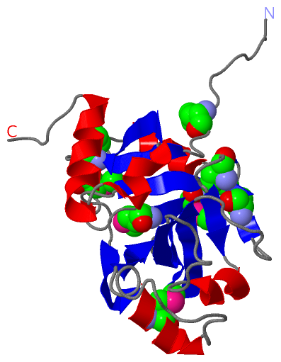 Asymmetric/Biological UnitChain A from PDB Type:PROTEIN Length:187 aligned with Y467_VIBCH | Q9KUP8 from UniProtKB/Swiss-Prot Length:187 Alignment length:187 1 |2 12 22 32 42 52 62 72 82 92 102 112 122 132 142 152 162 172 Y467_VIBCH - --------MNLTNHFLVAMPSMKDPYFKRSVIYICEHNQDGAMGLMINAPIDITVGGMLKQVDIEPAYPQSHQENLKKPVFNGGPVSEDRGFILHRPRDHYESSMKMTDDIAVTTSKDILTVLGTEAEPEGYIVALGYSGWSAGQLEVELTENSWLTIEADPELIFNTPVHEKWQKAIQKLGISPAQ 179 SCOP domains --------d2aj2a1 A:14-192 Hypothetical protein VC0467 SCOP domains CATH domains 2aj2A01 A:6-53,A:144-192 VC0467-like 2aj2A02 A:54-143 VC0467-like domains 2aj2A01 A:6-53,A:144-192 VC0467-like CATH domains Pfam domains ------------------------------------------------------------------------------------------------------------------------------------------------------------------------------------------- Pfam domains SAPs(SNPs) ------------------------------------------------------------------------------------------------------------------------------------------------------------------------------------------- SAPs(SNPs) PROSITE ------------------------------------------------------------------------------------------------------------------------------------------------------------------------------------------- PROSITE Transcript ------------------------------------------------------------------------------------------------------------------------------------------------------------------------------------------- Transcript 2aj2 A 6 SDIEVGHSmNLTNHFLVAmPSmKDPYFKRSVIYICEHNQDGAmGLmINAPIDITVGGmLKQVDIEPAYPQSHQENLKKPVFNGGPVSEDRGFILHRPRDHYESSmKmTDDIAVTTSKDILTVLGTEAEPEGYIVALGYSGWSAGQLEVELTENSWLTIEADPELIFNTPVHEKWQKAIQKLGISPAQ 192 15 25 | 35 45 | | 55 |65 75 85 95 105 | |115 125 135 145 155 165 175 185 14-MSE 24-MSE 48-MSE 63-MSE 110-MSE 27-MSE 51-MSE 112-MSE