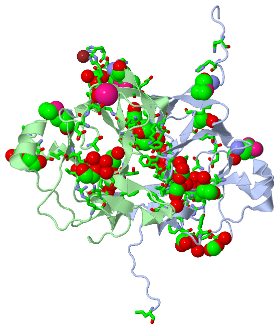 | 13 | BC4 | SOFTWARE | SER A:9 , SER B:9 , LEU B:12 , LEU B:38 , PRO B:39 , EDO B:158 , EDO B:161 | BINDING SITE FOR RESIDUE EDO B 160 |