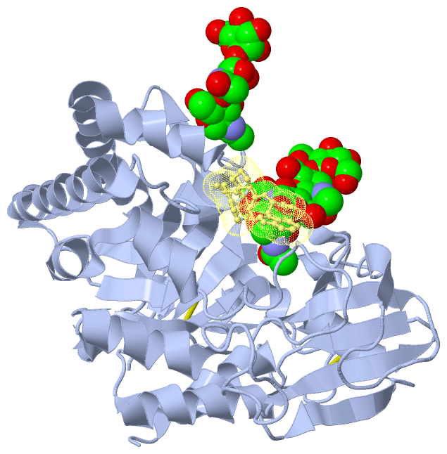 | | GO:0030246 | | carbohydrate binding | | Interacting selectively and non-covalently with any carbohydrate, which includes monosaccharides, oligosaccharides and polysaccharides as well as substances derived from monosaccharides by reduction of the carbonyl group (alditols), by oxidation of one or more hydroxy groups to afford the corresponding aldehydes, ketones, or carboxylic acids, or by replacement of one or more hydroxy group(s) by a hydrogen atom. Cyclitols are generally not regarded as carbohydrates. |