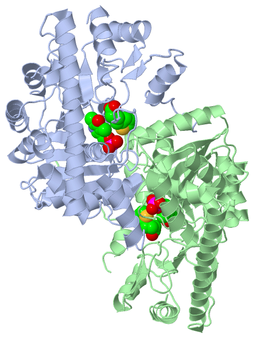 Asymmetric/Biological UnitChain A from PDB Type:PROTEIN Length:394 aligned with TYRB_PARDE | P95468 from UniProtKB/Swiss-Prot Length:394 Alignment length:394 10 20 30 40 50 60 70 80 90 100 110 120 130 140 150 160 170 180 190 200 210 220 230 240 250 260 270 280 290 300 310 320 330 340 350 360 370 380 390 TYRB_PARDE 1 MLGNLKPQAPDKILALMGEFRADPRQGKIDLGVGVYKDATGHTPIMRAVHAAEQRMLETETTKTYAGLSGEPEFQKAMGELILGDGLKSETTATLATVGGTGALRQALELARMANPDLRVFVSDPTWPNHVSIMNFMGLPVQTYRYFDAETRGVDFEGMKADLAAAKKGDMVLLHGCCHNPTGANLTLDQWAEIASILEKTGALPLIDLAYQGFGDGLEEDAAGTRLIASRIPEVLIAASCSKNFGIYRERTGCLLALCADAATRELAQGAMAFLNRQTYSFPPFHGAKIVSTVLTTPELRADWMAELEAVRSGMLRLREQLAGELRDLSGSDRFGFVAEHRGMFSRLGATPEQVKRIKEEFGIYMVGDSRINIAGLNDNTIPILARAIIEVGV 394 SCOP domains d2ay8a_ A: Aromatic aminoacid aminotransferase, AroAT SCOP domains CATH domains ----------2ay8A01 A:15-48,A:328-408 2ay8A02 A:49-327 Type I PLP-dependent aspartate aminotransferase-like (Major domain) 2ay8A01 A:15-48,A:328-408 Aspartate Aminotransferase, domain 1 - CATH domains Pfam domains ---------------------------------------------------------------------------------------------------------------------------------------------------------------------------------------------------------------------------------------------------------------------------------------------------------------------------------------------------------------------------------------------------------- Pfam domains SAPs(SNPs) ---------------------------------------------------------------------------------------------------------------------------------------------------------------------------------------------------------------------------------------------------------------------------------------------------------------------------------------------------------------------------------------------------------- SAPs(SNPs) PROSITE ---------------------------------------------------------------------------------------------------------------------------------------------------------------------------------------------------------------------------------------------------------------------------------------------------------------------------------------------------------------------------------------------------------- PROSITE Transcript ---------------------------------------------------------------------------------------------------------------------------------------------------------------------------------------------------------------------------------------------------------------------------------------------------------------------------------------------------------------------------------------------------------- Transcript 2ay8 A 5 MLGNLKPQAPDKILALMGEFRADPRQGKIDLGVGVYKDATGHTPIMRAVHAAEQRMLETETTKTYAGLSGEPEFQKAMGELILGDGLKSETTATLATVGGTGALRQALELARMANPDLRVFVSDPTWPNHVSIMNFMGLPVQTYRYFDAETRGVDFEGMKADLAAAKKGDMVLLHGCCHNPTGANLTLDQWAEIASILEKTGALPLIDLAYQGFGDGLEEDAAGTRLIASRIPEVLIAASCSKNFGIYRERTGCLLALCADAATRELAQGAMAFLNRQTYSFPPFHGAKIVSTVLTTPELRADWMAELEAVRSGMLRLREQLAGELRDLSGSDRFGFVAEHRGMFSRLGATPEQVKRIKEEFGIYMVGDSRINIAGLNDNTIPILARAIIEVGV 409 14 24 34 44 54 64| 75 85 || 98 108 118 133 143 154 164 174 184 194 204 214 224 |235 245 255 265 275 285 295 305 315 325 335 345 355 365 375 385 395 405 64| 91| 126|| 152| 231| 66 95 129| 154 233 133 Chain B from PDB Type:PROTEIN Length:388 aligned with TYRB_PARDE | P95468 from UniProtKB/Swiss-Prot Length:394 Alignment length:394 10 20 30 40 50 60 70 80 90 100 110 120 130 140 150 160 170 180 190 200 210 220 230 240 250 260 270 280 290 300 310 320 330 340 350 360 370 380 390 TYRB_PARDE 1 MLGNLKPQAPDKILALMGEFRADPRQGKIDLGVGVYKDATGHTPIMRAVHAAEQRMLETETTKTYAGLSGEPEFQKAMGELILGDGLKSETTATLATVGGTGALRQALELARMANPDLRVFVSDPTWPNHVSIMNFMGLPVQTYRYFDAETRGVDFEGMKADLAAAKKGDMVLLHGCCHNPTGANLTLDQWAEIASILEKTGALPLIDLAYQGFGDGLEEDAAGTRLIASRIPEVLIAASCSKNFGIYRERTGCLLALCADAATRELAQGAMAFLNRQTYSFPPFHGAKIVSTVLTTPELRADWMAELEAVRSGMLRLREQLAGELRDLSGSDRFGFVAEHRGMFSRLGATPEQVKRIKEEFGIYMVGDSRINIAGLNDNTIPILARAIIEVGV 394 SCOP domains d2ay8b_ B: Aromatic aminoacid aminotransferase, AroAT SCOP domains CATH domains ----------2ay8B01 B: 15-48,B:328-408 2ay8B02 B:49-327 Type I PLP-dependent aspartate aminotransferase-like (Major domain) 2ay8B01 B:15-48,B:328-408 Aspartate Aminotransferase, domain 1 - CATH domains Pfam domains ---------------------------------------------------------------------------------------------------------------------------------------------------------------------------------------------------------------------------------------------------------------------------------------------------------------------------------------------------------------------------------------------------------- Pfam domains SAPs(SNPs) ---------------------------------------------------------------------------------------------------------------------------------------------------------------------------------------------------------------------------------------------------------------------------------------------------------------------------------------------------------------------------------------------------------- SAPs(SNPs) PROSITE ---------------------------------------------------------------------------------------------------------------------------------------------------------------------------------------------------------------------------------------------------------------------------------------------------------------------------------------------------------------------------------------------------------- PROSITE Transcript ---------------------------------------------------------------------------------------------------------------------------------------------------------------------------------------------------------------------------------------------------------------------------------------------------------------------------------------------------------------------------------------------------------- Transcript 2ay8 B 5 MLGNLKPQAPDKILALMGEF------GKIDLGVGVYKDATGHTPIMRAVHAAEQRMLET