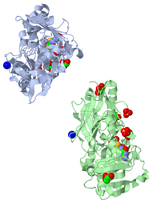 Asymmetric UnitChain A from PDB Type:PROTEIN Length:415 aligned with NIA_PICAN | P49050 from UniProtKB/Swiss-Prot Length:859 Alignment length:415 71 81 91 101 111 121 131 141 151 161 171 181 191 201 211 221 231 241 251 261 271 281 291 301 311 321 331 341 351 361 371 381 391 401 411 421 431 441 451 461 471 NIA_PICAN 62 PFNSEPPLTKLYDSGFLTPVSLHFVRNHGPVPYVPDENILDWEVSIEGMVETPYKIKLSDIMEQFDIYSTPVTMVCAGNRRKEQNMVKKGAGFNWGAAGTSTSLWTGCMLGDVIGKARPSKRARFVWMEGADNPANGAYRTCIRLSWCMDPERCIMIAYQQNGEWLHPDHGKPLRVVIPGVIGGRSVKWLKKLVVSDRPSENWYHYFDNRVLPTMVTPEMAKSDDRWWKDERYAIYDLNLQTIICKPENQQVIKISEDEYEIAGFGYNGGGVRIGRIEVSLDKGKSWKLADIDYPEDRYREAGYFRLFGGLVNVCDRMSCLCWCFWKLKVPLSELARSKDILIRGMDERMMVQPRTMYWNVTSMLNNWWYRVAIIREGESLRFEHPVVANKPGGWMDRVKAEGGDILDNNWGEVD 476 SCOP domains ------------------------------------------------------------------------------------------------------------------------------------------------------------------------------------------------------------------------------------------------------------------------------------------------------------------------------------------------------------------------------------------------------------------------------- SCOP domains CATH domains ------------------------------------------------------------------------------------------------------------------------------------------------------------------------------------------------------------------------------------------------------------------------------------------------------------------------------------------------------------------------------------------------------------------------------- CATH domains Pfam domains ------------------------------------------------------------------------------------------------------------------------------------------------------------------------------------------------------------------------------------------------------------------------------------------------------------------------------------------------------------------------------------------------------------------------------- Pfam domains SAPs(SNPs) ------------------------------------------------------------------------------------------------------------------------------------------------------------------------------------------------------------------------------------------------------------------------------------------------------------------------------------------------------------------------------------------------------------------------------- SAPs(SNPs) PROSITE -----------------------------------------------MOLYBDOPTERIN_EUK PDB: A:111-146 -------------------------------------------------------------------------------------------------------------------------------------------------------------------------------------------------------------------------------------------------------------------------------------------------------------------------------------------- PROSITE Transcript ------------------------------------------------------------------------------------------------------------------------------------------------------------------------------------------------------------------------------------------------------------------------------------------------------------------------------------------------------------------------------------------------------------------------------- Transcript 2bii A 64 PFNSEPPLTKLYDSGFLTPVSLHFVRNHGPVPYVPDENILDWEVSIEGMVETPYKIKLSDIMEQFDIYSTPVTMVCAGNRRKEQNMVKKGAGFNWGAAGTSTSLWTGCMLGDVIGKARPSKRARFVWMEGADNPANGAYGTCIRLSWCMDPERCIMIAYQQNGEWLHPDHGKPLRVVIPGVIGGRSVKWLKKLVVSDRPSENWYHYFDNRVLPTMVTPEMAKSDDRWWKDERYAIYDLNLQTIICKPENQQVIKISEDEYEIAGFGYNGGGVRIGRIEVSLDKGKSWKLADIDYPEDRYREAGYFRLFGGLVNVCDRMSCLCWCFWKLKVPLSELARSKDILIRGMDERMMVQPRTMYWNVTSMLNNWWYRVAIIREGESLRFEHPVVANKPGGWMDRVKAEGGDILDNNWGEVD 478 73 83 93 103 113 123 133 143 153 163 173 183 193 203 213 223 233 243 253 263 273 283 293 303 313 323 333 343 353 363 373 383 393 403 413 423 433 443 453 463 473 Chain B from PDB Type:PROTEIN Length:415 aligned with NIA_PICAN | P49050 from UniProtKB/Swiss-Prot Length:859 Alignment length:415 71 81 91 101 111 121 131 141 151 161 171 181 191 201 211 221 231 241 251 261 271 281 291 301 311 321 331 341 351 361 371 381 391 401 411 421 431 441 451 461 471 NIA_PICAN 62 PFNSEPPLTKLYDSGFLTPVSLHFVRNHGPVPYVPDENILDWEVSIEGMVETPYKIKLSDIMEQFDIYSTPVTMVCAGNRRKEQNMVKKGAGFNWGAAGTSTSLWTGCMLGDVIGKARPSKRARFVWMEGADNPANGAYRTCIRLSWCMDPERCIMIAYQQNGEWLHPDHGKPLRVVIPGVIGGRSVKWLKKLVVSDRPSENWYHYFDNRVLPTMVTPEMAKSDDRWWKDERYAIYDLNLQTIICKPENQQVIKISEDEYEIAGFGYNGGGVRIGRIEVSLDKGKSWKLADIDYPEDRYREAGYFRLFGGLVNVCDRMSCLCWCFWKLKVPLSELARSKDILIRGMDERMMVQPRTMYWNVTSMLNNWWYRVAIIREGESLRFEHPVVANKPGGWMDRVKAEGGDILDNNWGEVD 476 SCOP domains ------------------------------------------------------------------------------------------------------------------------------------------------------------------------------------------------------------------------------------------------------------------------------------------------------------------------------------------------------------------------------------------------------------------------------- SCOP domains CATH domains ------------------------------------------------------------------------------------------------------------------------------------------------------------------------------------------------------------------------------------------------------------------------------------------------------------------------------------------------------------------------------------------------------------------------------- CATH domains Pfam domains ------------------------------------------------------------------------------------------------------------------------------------------------------------------------------------------------------------------------------------------------------------------------------------------------------------------------------------------------------------------------------------------------------------------------------- 