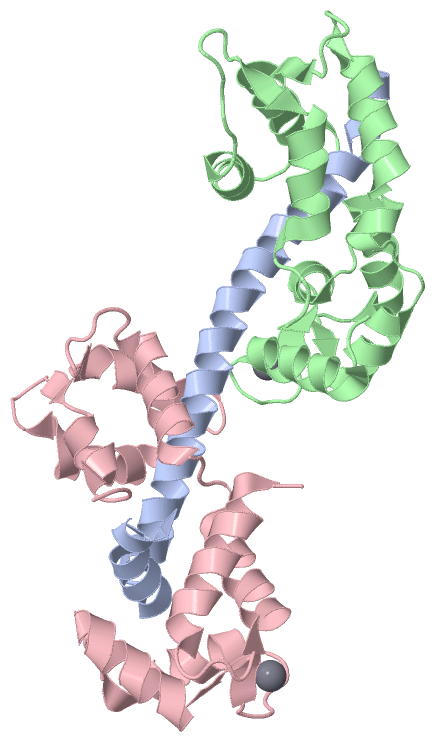 Asymmetric/Biological UnitChain A from PDB Type:PROTEIN Length:63 aligned with Q9BJD3_PHYPO | Q9BJD3 from UniProtKB/TrEMBL Length:2148 Alignment length:63 787 797 807 817 827 837 Q9BJD3_PHYPO 778 RRIGEIVKVVQAAARGWVERKHFRQAREKSVSARIIQDNIRAYLEFKNWAWWKLFAKARPLLV 840 SCOP domains --------------------------------------------------------------- SCOP domains CATH domains --------------------------------------------------------------- CATH domains Pfam domains --------------------------------------------------------------- Pfam domains SAPs(SNPs) --------------------------------------------------------------- SAPs(SNPs) PROSITE --------------------------------------------------------------- PROSITE Transcript --------------------------------------------------------------- Transcript 2bl0 A 778 RRIGEIVKVVQAAARGWVERKHFRQAREKSVSARIIQDNIRAYLEFKNWAWWKLFAKARPLLV 840 787 797 807 817 827 837 Chain B from PDB Type:PROTEIN Length:145 aligned with MLR_PHYPO | P08053 from UniProtKB/Swiss-Prot Length:147 Alignment length:145 10 20 30 40 50 60 70 80 90 100 110 120 130 140 MLR_PHYPO 1 TASADQIQECFQIFDKDNDGKVSIEELGSALRSLGKNPTNAELNTIKGQLNAKEFDLATFKTVYRKPIKTPTEQSKEMLDAFRALDKEGNGTIQEAELRQLLLNLGDALTSSEVEELMKEVSVSGDGAINYESFVDMLVTGYPLA 145 SCOP domains ------------------------------------------------------------------------------------------------------------------------------------------------- SCOP domains CATH domains 2bl0B01 B:1-68 EF-hand ----------------------------------------------------------------------------- CATH domains Pfam domains ------------------------------------------------------------------------------------------------------------------------------------------------- Pfam domains SAPs(SNPs) ------------------------------------------------------------------------------------------------------------------------------------------------- SAPs(SNPs) PROSITE (1) -EF_HAND_2 PDB: B:2-37 UniProt: 2-37-----------------------------------EF_HAND_2 PDB: B:73-108 EF_HAND_2 PDB: B:109-144 - PROSITE (1) PROSITE (2) --------------EF_HAND_1 ---------------------------------------------------------------------------------------------------------------------- PROSITE (2) Transcript ------------------------------------------------------------------------------------------------------------------------------------------------- Transcript 2bl0 B 1 TASADQIQECFQIFDKDNDGKVSIEELGSALRSLGKNPTNAELNTIKGQLNAKEFDLATFKTVYRKPIKTPTEQSKEMLDAFRALDKEGNGTIQEAELRQLLLNLGDALTSSEVEELMKEVSVSGDGAINYESFVDMLVTGYPLA 145 10 20 30 40 50 60 70 80 90 100 110 120 130 140 Chain C from PDB Type:PROTEIN Length:142 aligned with Q8WSQ4_PHYPO | Q8WSQ4 from UniProtKB/TrEMBL Length:157 Alignment length:142 23 33 43 53 63 73 83 93 103 113 123 133 143 153 Q8WSQ4_PHYPO 14 GDDQVSEFKEAFELFDSERTGFITKEGLQTVLKQFGVRVEPAAFNEMFNEADATGNGKIQFPEFLSMMGRRMKQTTSEDILRQAFRTFDPEGTGYIPKAALQDALLNLGDRLKPHEFAEFLGITETEKGQIRYDNFINTMFT 155 SCOP domains d2bl0c_ C: automated matches SCOP domains CATH domains ---------------------------------------------------------------------------------------------------------------------------------------------- CATH domains Pfam domains ---------------------------------------------------------------------------------------------------------------------------------------------- Pfam domains SAPs(SNPs) ---------------------------------------------------------------------------------------------------------------------------------------------- SAPs(SNPs) PROSITE ---------------------------------------------------------------------------------------------------------------------------------------------- PROSITE Transcript ---------------------------------------------------------------------------------------------------------------------------------------------- Transcript 2bl0 C 13 GDDQVSEFKEAFELFDSERTGFITKEGLQTVLKQFGVRVEPAAFNEMFNEADATGNGKIQFPEFLSMMGRRMKQTTSEDILRQAFRTFDPEGTGYIPKAALQDALLNLGDRLKPHEFAEFLGITETEKGQIRYDNFINTMFT 154 22 32 42 52 62 72 82 92 102 112 122 132 142 152
