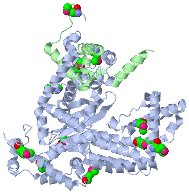Asymmetric UnitChain A from PDB Type:PROTEIN Length:518 aligned with Q25438_MUSDO | Q25438 from UniProtKB/TrEMBL Length:612 Alignment length:534 85 95 105 115 125 135 145 155 165 175 185 195 205 215 225 235 245 255 265 275 285 295 305 315 325 335 345 355 365 375 385 395 405 415 425 435 445 455 465 475 485 495 505 515 525 535 545 555 565 575 585 595 605 Q25438_MUSDO 76 SLKQSRELKTVSADCKKEAIEKCAQWVVRDCRPFSAVSGSGFIDMIKFFIKVKAEYGEHVNVEELLPSPITLSRKVTSDAKEKKALISREIKSAVEKDGASATIDLWTDNYIKRNFLGVTLHYHENNELRDLILGLKSLDFERSTAENIYKKLKAIFSQFNVEDLSSIKFVTDRGANVVKSLANNIRINCSSHLLSNVLENSFEETPELNMPILACKNIVKYFKKANLQHRLRSSLKSECPTRWNSTYTMLRSILDNWESVIQILSEAGETQRIVHINKSIIQTMVNILDGFERIFKELQTCSSPSLCFVVPSILKVKEICSPDVGDVADIAKLKVNIIKNVRIIWEENLSIWHYTAFFFYPPALHMQQEKVAQIKEFCLSKMEDLELINRMSSFNELSATQLNQSDSNSHNSIDLTSHSKDISTTSFFFPQLTQNNSREPPVCPSDEFEFYRKEIVILSEDFKVMEWWNLNSKKYPKLSKLALSLLSIPASSAASERTFSLAGNIITEKRNRIGQQTVDSLLFLNSFYKNFCK 609 SCOP domains ---d2bw3a1 A:79-162 Transposase Hermes, dimerisation domain d2bw3a2 A:163-609 Transposase Hermes, catalytic domain SCOP domains CATH domains ------------------------------------------------------------------------------------------------------------------------------------------------------------------------------------------------------------------------------------------------------------------------------------------------------------------------------------------------------------------------------------------------------------------------------------------------------------------------------------------------------------------------------------------------------ CATH domains Pfam domains ------------------------------------------------------------------------------------------------------------------------------------------------------------------------------------------------------------------------------------------------------------------------------------------------------------------------------------------------------------------------------------------------------------------------------------------------------------------------------------------------------------------------------------------------------ Pfam domains SAPs(SNPs) ------------------------------------------------------------------------------------------------------------------------------------------------------------------------------------------------------------------------------------------------------------------------------------------------------------------------------------------------------------------------------------------------------------------------------------------------------------------------------------------------------------------------------------------------------ SAPs(SNPs) PROSITE ------------------------------------------------------------------------------------------------------------------------------------------------------------------------------------------------------------------------------------------------------------------------------------------------------------------------------------------------------------------------------------------------------------------------------------------------------------------------------------------------------------------------------------------------------ PROSITE Transcript ------------------------------------------------------------------------------------------------------------------------------------------------------------------------------------------------------------------------------------------------------------------------------------------------------------------------------------------------------------------------------------------------------------------------------------------------------------------------------------------------------------------------------------------------------ Transcript 2bw3 A 76 SHmQSRELKTVSADCKKEAIEKCAQWVVRDCRPFSAVSGSGFIDmIKFFIKVKAEYGEHVNVEELLPSPITLSRKVTSDAKEKKALIGREIKSAVEKDGASATIDLWTDNYIKRNFLGVTLHYHENNELRDLILGLKSLDFERSTAENIYKKLKAIFSQFNVEDLSSIKFVTDRGANVVKSLANNIRINCSSHLLSNVLENSFEETPELNmPILACKNIVKYFKKANLQHRLRSSLKSECPTRWNSTYTmLRSILDNWESVIQILSEAGETQRIVHINKSIIQTmVNILDGFERIFKELQTCSSPSLCFVVPSILKVKEICSPDVGDVADIAKLKVNIIKNVRIIWEENLSIWHYTAFFFYPPALHmQQEKVAQIKEFCLSKmEDLELINRmSSFNELSATQLNQ----------------DISTTSFFFPQLTQNNSREPPVCPSDEFEFYRKEIVILSEDFKVmEWWNLNSKKYPKLSKLALSLLSIPASSAASERTFSLAGNIITEKRNRIGQQTVDSLLFLNSFYKNFCK 609 | 85 95 105 115 | 125 135 145 155 165 175 185 195 205 215 225 235 245 255 265 275 285| 295 305 315 325 335 345 355 | 365 375 385 395 405 415 425 435 |445 455 | 465 | 475 | - - | 505 515 525 535 | 545 555 565 575 585 595 605 | 120-MSE 286-MSE 325-MSE 360-MSE 442-MSE 458-MSE 467-MSE 480 497 541-MSE 78-MSE Chain B from PDB Type:PROTEIN Length:84 aligned with Q25442_MUSDO | Q25442 from UniProtKB/TrEMBL Length:612 Alignment length:84 85 95 105 115 125 135 145 155 Q25442_MUSDO 76 SLKQSRELKTVSADCKKEAIEKCAQWVVRDCRPFSAVSGSGFIDMIKFFIKVGAEYGEHVNVEELLPSPITLSRKVTSDAKEKK 159 SCOP domains ---d2bw3b1 B:79-158 Transposase Hermes, dimerisation domain - SCOP domains CATH domains ------------------------------------------------------------------------------------ CATH domains Pfam domains ------------------------------------------------------------------------------------ Pfam domains SAPs(SNPs) ------------------------------------------------------------------------------------ SAPs(SNPs) PROSITE ------------------------------------------------------------------------------------ PROSITE Transcript ------------------------------------------------------------------------------------ Transcript 2bw3 B 76 SHmQSRELKTVSADCKKEAIEKCAQWVVRDCRPFSAVSGSGFIDmIKFFIKVGAEYGDHVNVEELLPSPITLSRKVTSDAKEKA 159 | 85 95 105 115 | 125 135 145 155 78-MSE 120-MSE