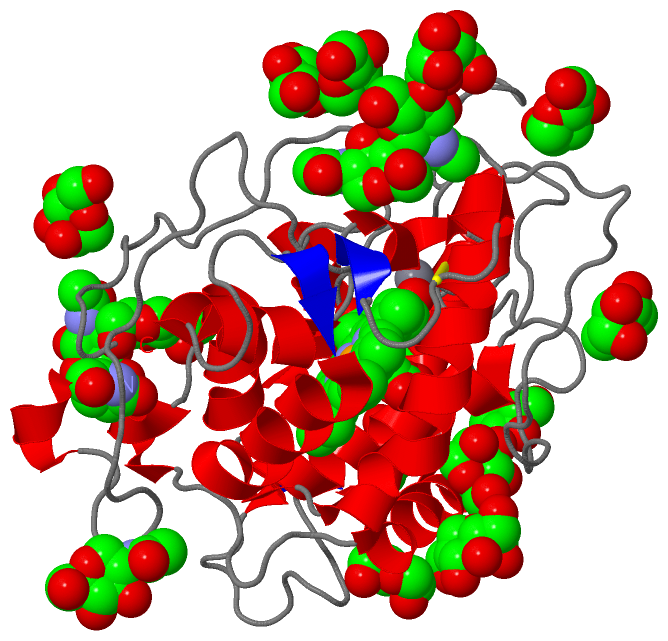 | 05 | AC5 | SOFTWARE | TYR A:212 , ASN A:216 , HIS A:222 , LEU A:294 , ASP A:298 , NAG A:1306 , HOH A:2439 , HOH A:2440 , HOH A:2441 , HOH A:2442 , HOH A:2443 | BINDING SITE FOR RESIDUE NAG A1305 |