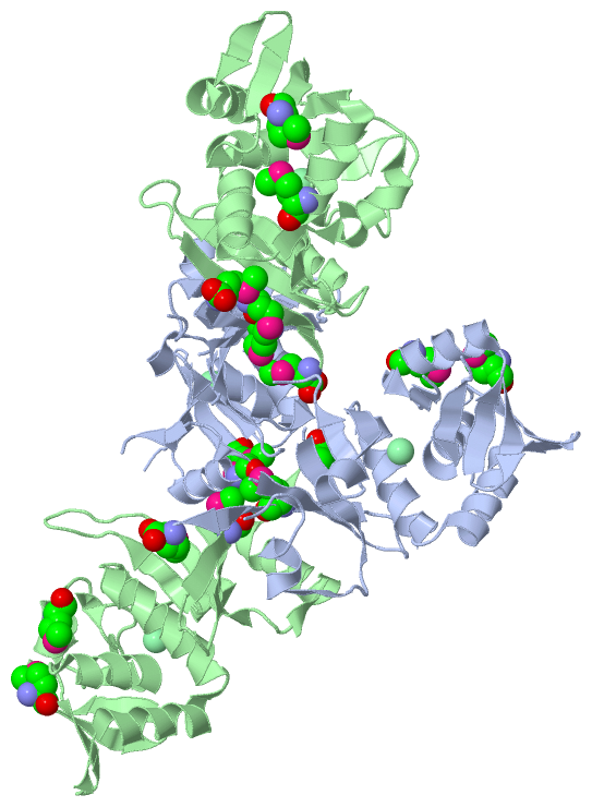 Ligands, Modified Residues, Ions (2, 10)| Asymmetric Unit (2, 10) Biological Unit 1 (1, 8) Biological Unit 2 (1, 16) |