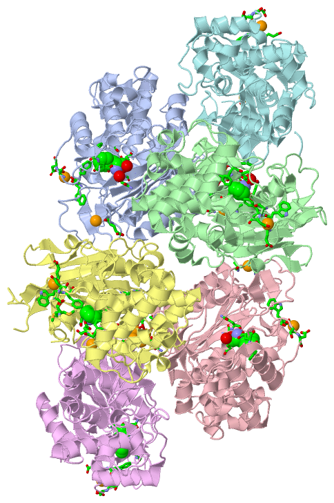 Ligands, Modified Residues, Ions (2, 25)| Asymmetric Unit (2, 25) Biological Unit 1 (1, 1) Biological Unit 2 (1, 1) Biological Unit 3 (1, 1) Biological Unit 4 (1, 1) Biological Unit 5 (1, 1) Biological Unit 6 (0, 0) |