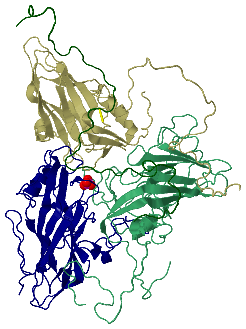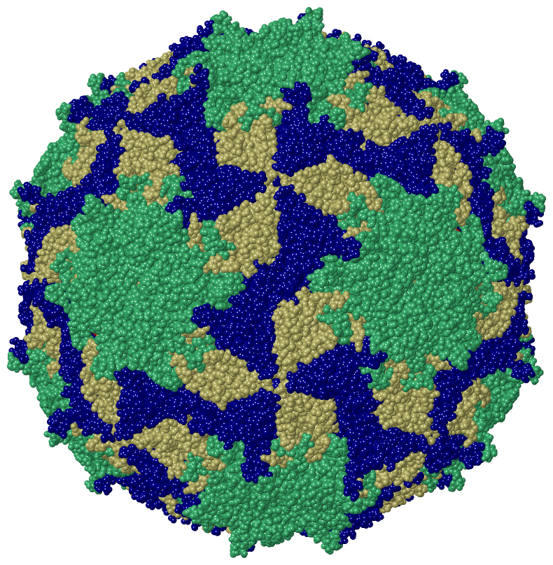 | | GO:0019030 | | icosahedral viral capsid | | The protein coat that surrounds the infective nucleic acid in some virus particles; the subunits are arranged to form an icosahedron, a solid with 20 faces and 12 vertices. Icosahedral capsids have 12 pentamers plus 10(T-1) hexamers, where T is the triangulation number. Tobacco satellite necrosis virus has such a capsid structure. |
