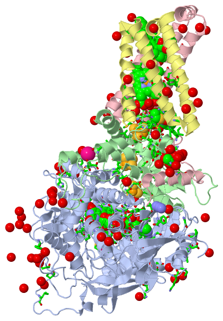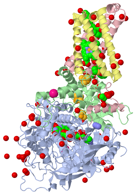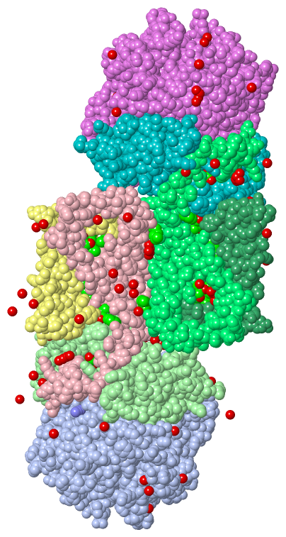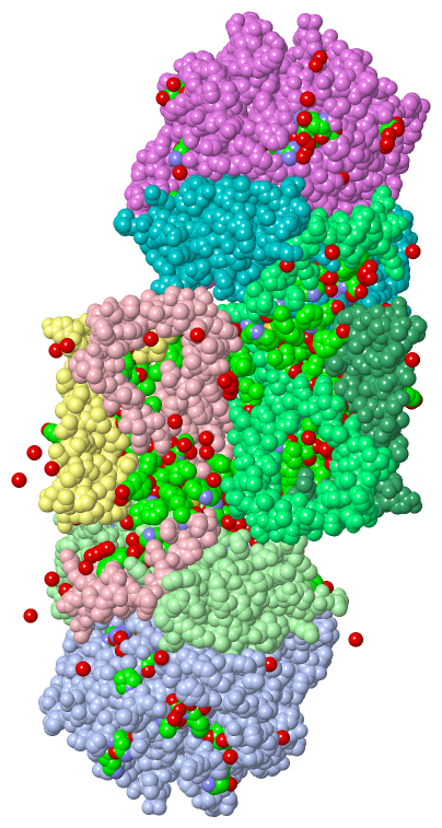 Asymmetric UnitChain A from PDB Type:PROTEIN Length:613 aligned with SDHA_CHICK | Q9YHT1 from UniProtKB/Swiss-Prot Length:665 Alignment length:613 62 72 82 92 102 112 122 132 142 152 162 172 182 192 202 212 222 232 242 252 262 272 282 292 302 312 322 332 342 352 362 372 382 392 402 412 422 432 442 452 462 472 482 492 502 512 522 532 542 552 562 572 582 592 602 612 622 632 642 652 662 SDHA_CHICK 53 STQYPVVDHEFDAVVVGAGGAGLRAAFGLSEAGFNTACVTKLFPTRSHTVAAQGGINAALGNMEDDNWRWHFYDTVKGSDWLGDQDAIHYMTEQAPAAVIELENYGMPFSRTEEGKIYQRAFGGQSLQFGKGGQAHRCCCVADRTGHSLLHTLYGRSLRYDTSYFVEYFALDLLMENGECRGVIALCIEDGTIHRFRAKNTVIATGGYGRTYFSCTSAHTSTGDGTAMVTRAGLPCQDLEFVQFHPTGIYGAGCLITEGCRGEGGILINSQGERFMERYAPVAKDLASRDVVSRSMTIEIREGRGCGPEKDHVYLQLHHLPPQQLATRLPGISETAMIFAGVDVTKEPIPVLPTVHYNMGGIPTNYKGQVITHVNGEDKVVPGLYACGEAASASVHGANRLGANSLLDLVVFGRACALTIAETCKPGEPVPSIKPNAGEESVANLDKLRFADGTIRTSEARLNMQKTMQSHAAVFRTGSILQEGCEKLSQIYCDLAHLKTFDRGIVWNTDLVETLELQNLMLCALQTIYGAEARKESRGAHAREDYKFRIDDFDYSKPLQGQQKRPFEEHWRKHTLSYVDVKSGKVTLKYRPVIDRTLNEEDCSSVPPAIRSY 665 SCOP domains ------------------------------------------------------------------------------------------------------------------------------------------------------------------------------------------------------------------------------------------------------------------------------------------------------------------------------------------------------------------------------------------------------------------------------------------------------------------------------------------------------------------------------------------------------------------------------------------------------------------------------------- SCOP domains CATH domains 2fbwA01 A:9-256,A:361-439 [code=3.50.50.60, no name defined] --------------------------------------------------------------------------------------------------------2fbwA01 A:9-256,A:361-439 [code=3.50.50.60, no name defined] 2fbwA03 A:440-556 [code=1.20.58.100, no name defined] 2fbwA04 A:557-621 succinate dehydrogenase protein domain CATH domains Pfam domains ------------------------------------------------------------------------------------------------------------------------------------------------------------------------------------------------------------------------------------------------------------------------------------------------------------------------------------------------------------------------------------------------------------------------------------------------------------------------------------------------------------------------------------------------------------------------------------------------------------------------------------- Pfam domains SAPs(SNPs) ------------------------------------------------------------------------------------------------------------------------------------------------------------------------------------------------------------------------------------------------------------------------------------------------------------------------------------------------------------------------------------------------------------------------------------------------------------------------------------------------------------------------------------------------------------------------------------------------------------------------------------- SAPs(SNPs) PROSITE (2) ---------------------------------------------FRD_SDH_FA------------------------------------------------------------------------------------------------------------------------------------------------------------------------------------------------------------------------------------------------------------------------------------------------------------------------------------------------------------------------------------------------------------------------------------------------------------------------------------------------------------------------------------------------------------------------------ PROSITE (2) Transcript ------------------------------------------------------------------------------------------------------------------------------------------------------------------------------------------------------------------------------------------------------------------------------------------------------------------------------------------------------------------------------------------------------------------------------------------------------------------------------------------------------------------------------------------------------------------------------------------------------------------------------------- Transcript 2fbw A 9 STQYPVVDHEFDAVVVGAGGAGLRAAFGLSEAGFNTACVTKLFPTRSHTVAAQGGINAALGNMEDDNWRWHFYDTVKGSDWLGDQDAIHYMTEQAPAAVIELENYGMPFSRTEEGKIYQRAFGGQSLQFGKGGQAHRCCCVADRTGHSLLHTLYGRSLRYDTSYFVEYFALDLLMENGECRGVIALCIEDGTIHRFRAKNTVIATGGYGRTYFSCTSAHTSTGDGTAMVTRAGLPCQDLEFVQFHPTGIYGAGCLITEGCRGEGGILINSQGERFMERYAPVAKDLASRDVVSRSMTIEIREGRGCGPEKDHVYLQLHHLPPQQLATRLPGISETAMIFAGVDVTKEPIPVLPTVHYNMGGIPTNYKGQVITHVNGEDKVVPGLYACGEAASASVHGANRLGANSLLDLVVFGRACALTIAETCKPGEPVPSIKPNAGEESVANLDKLRFADGTIRTSEARLNMQKTMQSHAAVFRTGSILQEGCEKLSQIYRDLAHLKTFDRGIVWNTDLVETLELQNLMLCALQTIYGAEARKESRGAHAREDYKLRIDEFDYSKPLQGQQKRPFEEHWRKHTLSYVDVKSGKVTLKYRPVIDRTLNEEDCSSVPPAIRSY 621 18 28 38 48 58 68 78 88 98 108 118 128 138 148 158 168 178 188 198 208 218 228 238 248 258 268 278 288 298 308 318 328 338 348 358 368 378 388 398 408 418 428 438 448 458 468 478 488 498 508 518 528 538 548 558 568 578 588 598 608 618 Chain B from PDB Type:PROTEIN Length:239 aligned with SDHB_CHICK | Q9YHT2 from UniProtKB/Swiss-Prot Length:290 Alignment length:239 55 65 75 85 95 105 115 125 135 145 155 165 175 185 195 205 215 225 235 245 255 265 275 SDHB_CHICK 46 TSRIKKFSIYRWDPDKPGDKPRMQTYEVDLNKCGPMVLDALIKIKNELDSTLTFRRSCREGICGSCAMNIAGGNTLACTKKIDPDLSKTTKIYPLPHMYVVKDLVPDLSNFYAQYKSIEPYLKKKDESKQGKEQYLQSIEDRQKLDGLYECILCACCSTSCPSYWWNGDKYLGPAVLMQAYRWMIDSRDDYTEERLAQLQDPFSLYRCHTIMNCTRTCPKGLNPGKAIAEIKKMMATYK 284 SCOP domains d2fbwb1 B:8-114 Succinate dehydogenase iron-sulfur protein, N-terminal domai