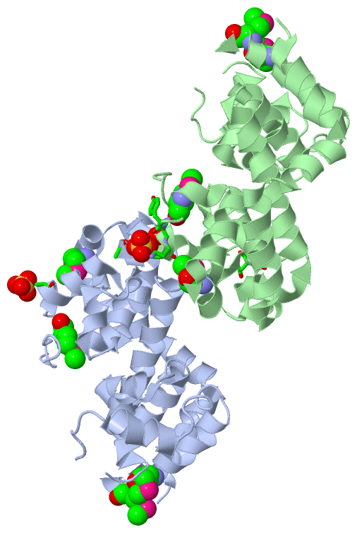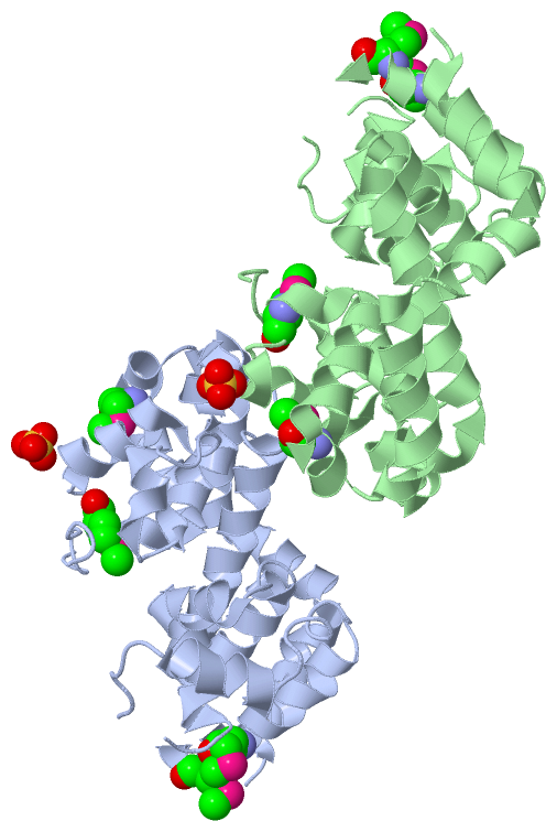 Ligands, Modified Residues, Ions (2, 10)| Asymmetric Unit (2, 10) Biological Unit 1 (2, 5) Biological Unit 2 (2, 5) |