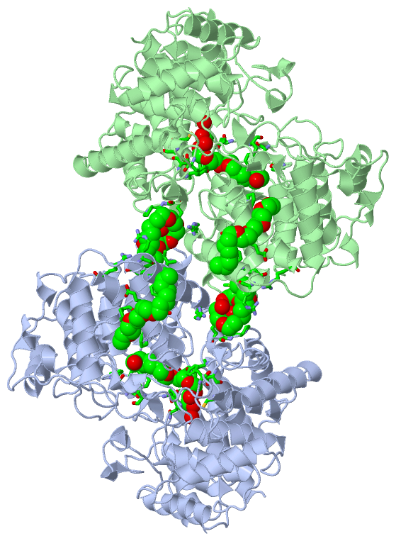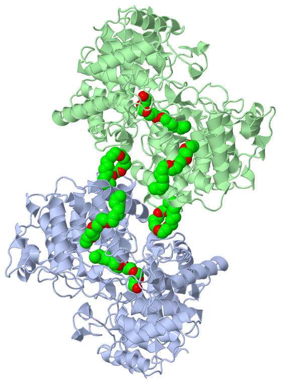 Asymmetric UnitChain A from PDB Type:PROTEIN Length:623 aligned with SQHC_ALIAD | P33247 from UniProtKB/Swiss-Prot Length:631 Alignment length:623 17 27 37 47 57 67 77 87 97 107 117 127 137 147 157 167 177 187 197 207 217 227 237 247 257 267 277 287 297 307 317 327 337 347 357 367 377 387 397 407 417 427 437 447 457 467 477 487 497 507 517 527 537 547 557 567 577 587 597 607 617 627 SQHC_ALIAD 8 APAYARTLDRAVEYLLSCQKDEGYWWGPLLSNVTMEAEYVLLCHILDRVDRDRMEKIRRYLLHEQREDGTWALYPGGPPDLDTTIEAYVALKYIGMSRDEEPMQKALRFIQSQGGIESSRVFTRMWLALVGEYPWEKVPMVPPEIMFLGKRMPLNIYEFGSWARATVVALSIVMSRQPVFPLPERARVPELYETDVPPRRRGAKGGGGWIFDALDRALHGYQKLSVHPFRRAAEIRALDWLLERQAGDGSWGGIQPPWFYALIALKILDMTQHPAFIKGWEGLELYGVELDYGGWMFQASISPVWDTGLAVLALRAAGLPADHDRLVKAGEWLLDRQITVPGDWAVKRPNLKPGGFAFQFDNVYYPDVDDTAVVVWALNTLRLPDERRRRDAMTKGFRWIVGMQSSNGGWGAYDVDNTSDLPNHIPFCDFGEVTDPPSEDVTAHVLECFGSFGYDDAWKVIRRAVEYLKREQKPDGSWFGRWGVNYLYGTGAVVSALKAVGIDTREPYIQKALDWVEQHQNPDGGWGEDCRSYEDPAYAGKGASTPSQTAWALMALIAGGRAESEAARRGVQYLVETQRPDGGWDEPYYTGTGFPGDFYLGYTMYRHVFPTLALGRYKQAIER 630 SCOP domains d2sqca1 A:8-36,A:308-630 d2sqca2 A:37-307 Squalene-hopene cyclase d2sqca1 A:8-36,A:308-630 Squalene-hopene cyclase SCOP domains CATH domains --2sqcA01 A:10-35,A:308-628 2sqcA02 A:36-307 [code=1.50.10.20, no name defined] 2sqcA01 A:10-35,A:308-628 [code=1.50.10.20, no name defined] -- CATH domains Pfam domains ----------------------------------------------------------------------------------------------------------------------------------------------------------------------------------------------------------------------------------------------------------------------------------------------------------------------------------------------------------------------------------------------------------------------------------------------------------------------------------------------------------------------------------------------------------------------------------------------------------------------------------------------- Pfam domains SAPs(SNPs) ----------------------------------------------------------------------------------------------------------------------------------------------------------------------------------------------------------------------------------------------------------------------------------------------------------------------------------------------------------------------------------------------------------------------------------------------------------------------------------------------------------------------------------------------------------------------------------------------------------------------------------------------- SAPs(SNPs) PROSITE ------------------------------------------------------------------------------------------------------------------------------------------------------------------------------------------------------------------------------------------------------------------------------------------------------------------------------------------------------------------------------------------------------------------------------------------------------------------------------------------TERPENE_SYNTHAS-------------------------------------------------------------------------------------------------------------------------------------- PROSITE Transcript ----------------------------------------------------------------------------------------------------------------------------------------------------------------------------------------------------------------------------------------------------------------------------------------------------------------------------------------------------------------------------------------------------------------------------------------------------------------------------------------------------------------------------------------------------------------------------------------------------------------------------------------------- Transcript 2sqc A 8 APAYARTLDRAVEYLLSCQKDEGYWWGPLLSNVTMEAEYVLLCHILDRVDRDRMEKIRRYLLHEQREDGTWALYPGGPPDLDTTIEAYVALKYIGMSRDEEPMQKALRFIQSQGGIESSRVFTRMWLALVGEYPWEKVPMVPPEIMFLGKRMPLNIYEFGSWARATVVALSIVMSRQPVFPLPERARVPELYETDVPPRRRGAKGGGGWIFDALDRALHGYQKLSVHPFRRAAEIRALDWLLERQAGDGSWGGIQPPWFYALIALKILDMTQHPAFIKGWEGLELYGVELDYGGWMFQASISPVWDTGLAVLALRAAGLPADHDRLVKAGEWLLDRQITVPGDWAVKRPNLKPGGFAFQFDNVYYPDVCDTAVVVWALNTLRLPDERRRRDAMTKGFRWIVGMQSSNGGWGAYDVDNTSDLPNHIPFSDFGEVTDPPSEDVTAHVLECFGSFGYDDAWKVIRRAVEYLKREQKPDGSWFGRWGVNYLYGTGAVVSALKAVGIDTREPYIQKALDWVEQHQNPDGGWGEDCRSYEDPAYAGKGASTPSQTAWALMALIAGGRAESEAARRGVQYLVETQRPDGGWDEPYYTGTGFPGDFYLGYTMYRHVFPTLALGRYKQAIER 630 17 27 37 47 57 67 77 87 97 107 117 127 137 147 157 167 177 187 197 207 217 227 237 247 257 267 277 287 297 307 317 327 337 347 357 367 377 387 397 407 417 427 437 447 457 467 477 487 497 507 517 527 537 547 557 567 577 587 597 607 617 627 Chain B from PDB Type:PROTEIN Length:623 aligned with SQHC_ALIAD | P33247 from UniProtKB/Swiss-Prot Length:631 Alignment length:623 17 27 37 47 57 67 77 87 97 107 117 127 137 147 157 167 177 187 197 207 217 227 237 247 257 267 277 287 297 307 317 327 337 347 357 367 377 387 397 407 417 427 437 447 457 467 477 487 497 507 517 527 537 547 557 567 577 587 597 607 617 627 SQHC_ALIAD 8 APAYARTLDRAVEYLLSCQKDEGYWWGPLLSNVTMEAEYVLLCHILDRVDRDRMEKIRRYLLHEQREDGTWALYPGGPPDLDTTIEAYVALKYIGMSRDEEPMQKALRFIQSQGGIESSRVFTRMWLALVGEYPWEKVPMVPPEIMFLGKRMPLNIYEFGSWARATVVALSIVMSRQPVFPLPERARVPELYETDVPPRRRGAKGGGGWIFDALDRALHGYQKLSVHPFRRAAEIRALDWLLERQAGDGSWGGIQPPWFYALIALKILDMTQHPAFIKGWEGLELYGVELDYGGWMFQASISPVWDTGLAVLALRAAGLPADHDRLVKAGEWLLDRQITVPGDWAVKRPNLKPGGFAFQFDNVYYPDVDDTAVVVWALNTLRLPDERRRRDAMTKGFRWIVGMQSSNGGWGAYDVDNTSDLPNHIPFCDFGEVTDPPSEDVTAHVLECFGSFGYDDAWKVIRRAVEYLKREQKPDGSWFGRWGVNYLYGTGAVVSALKAVGIDTREPYIQKALDWVEQHQNPDGGWGEDCRSYEDPAYAGKGASTPSQTAWALMALIAGGRAESEAARRGVQYLVETQRPDGGWDEPYYTGTGFPGDFYLGYTMYRHVFPTLALGRYKQAIER 630 SCOP domains d2sqcb1 B:8-36,B:308-630 d2sqcb2 B:37-307 Squalene-hopene cyclase d2sqcb1 B:8-36,B:308-630 Squalene-hopene cyclase SCOP domains CATH domains --2sqcB01 B:10-35,B:308-628 2sqcB02 B: