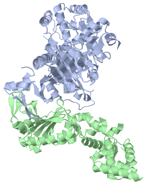 Asymmetric/Biological UnitChain A from PDB Type:PROTEIN Length:485 aligned with Q8KC98_CHLTE | Q8KC98 from UniProtKB/TrEMBL Length:1102 Alignment length:519 429 439 449 459 469 479 489 499 509 519 529 539 549 559 569 579 589 599 609 619 629 639 649 659 669 679 689 699 709 719 729 739 749 759 769 779 789 799 809 819 829 839 849 859 869 879 889 899 909 919 929 Q8KC98_CHLTE 420 PEIVKQGKEAVRQYFQSIEEARSKGEALVHLQEIKVHLIGDGMAGKTSLLKQLIGETFDPKESQTHGLNVVTKQAPNIKGLENDDELKECLFHFWDFGGQEIMHASHQFFMTRSSVYMLLLDSRTDSNKHYWLRHIEKYGGKSPVIVVMNKIDENPSYNIEQKKINERFPAIENRFHRISCKNGDGVESIAKSLKSAVLHPDSIYGTPLAPSWIKVKEKLVEATTAQRYLNRTEVEKICNDSGITDPGERKTLLGYLNNLGIVLYFEALDLSEIYVLDPHWVTIGVYRIINSSKTKNGHLNTSALGYILNEEQIRCDEYDPAKNNKFTYTLLEQRYLLDIMKQFELCYDEGKGLFIIPSNLPTQIDNEPEITEGEPLRFIMKYDYLPSTIIPRLMIAMQHQILDRMQWRYGMVLKSQDHEGALAKVVAETKDSTITIAIQGEPRCKREYLSIIWYEIKKINANFTNLDVKEFIPLPGHPDELVEYKELLGLEKMGRDEYVSGKLEKVFSVSKMLDSVIS 938 SCOP domains --------------------------------------------------------------------------------------------------------------------------------------------------------------------------------------------------------------------------------------------------------------------------------------------------------------------------------------------------------------------------------------------------------------------------------------------------------------------------------------------------------------------------------------- SCOP domains CATH domains --------------------------------------------------------------------------------------------------------------------------------------------------------------------------------------------------------------------------------------------------------------------------------------------------------------------------------------------------------------------------------------------------------------------------------------------------------------------------------------------------------------------------------------- CATH domains Pfam domains --------------------------------------------------------------------------------------------------------------------------------------------------------------------------------------------------------------------------------------------------------------------------------------------------------------------------------------------------------------------------------------------------------------------------------------------------------------------------------------------------------------------------------------- Pfam domains SAPs(SNPs) --------------------------------------------------------------------------------------------------------------------------------------------------------------------------------------------------------------------------------------------------------------------------------------------------------------------------------------------------------------------------------------------------------------------------------------------------------------------------------------------------------------------------------------- SAPs(SNPs) PROSITE --------------------------------------------------------------------------------------------------------------------------------------------------------------------------------------------------------------------------------------------------------------------------------------------------------------------------------------------------------------------------------------------------------------------------------------------------------------------------------------------------------------------------------------- PROSITE Transcript --------------------------------------------------------------------------------------------------------------------------------------------------------------------------------------------------------------------------------------------------------------------------------------------------------------------------------------------------------------------------------------------------------------------------------------------------------------------------------------------------------------------------------------- Transcript 3dpu A 420 PEIVKQGKEAVRQYFQSIEEARSKGEALVHLQEIKVHLIGDGMAGKTSLLKQLIG-----------GLNVVTKQAPNIKGLENDDELKECLFHFWDFGGQEIMHASHQFFMTRSSVYMLLLDSRTDSNKHYWLRHIEKYGGKSPVIVVMNKIDENPSYNIEQKKINERFPAIENRFHRISC-----VESIAKSLKSAVLHPDSIYGTPLAPSWIKVKEKLVEATTAQRYLNRTEVEKICNDSGITDPGERKTLLGYLNNLGIVLYFEALDLSEIYVLDPHWVTIGVYRIINSSKTKNGHLNTSALGYILNEE-------------KFTYTLLEQRYLLDIMKQFELCYDEGKGLFIIPSNLPTQI-----ITEGEPLRFIMKYDYLPSTIIPRLMIAMQHQILDRMQWRYGMVLKSQDHEGALAKVVAETKDSTITIAIQGEPRCKREYLSIIWYEIKKINANFTNLDVKEFIPLPGHPDELVEYKELLGLEKMGRDRYVSGKLEKVFSVSKMLDSVIS 938 429 439 449 459 469 | - |489 499 509 519 529 539 549 559 569 579 589 599| |609 619 629 639 649 659 669 679 689 699 709 719 729 | - | 749 759 769 779 | -| 799 809 819 829 839 849 859 869 879 889 899 909 919 929 474 486 600 606 731 745 784 790 Chain B from PDB Type:PROTEIN Length:328 aligned with Q8KC98_CHLTE | Q8KC98 from UniProtKB/TrEMBL Length:1102 Alignment length:524 426 436 446 456 466 476 486 496 506 516 526 536 546 556 566 576 586 596 606 616 626 636 646 656 666 676 686 696 706 716 726 736 746 756 766 776 786 796 806 816 826 836 846 856 866 876 886 896 906 916 926 936 Q8KC98_CHLTE 417 SPPPEIVKQGKEAVRQYFQSIEEARSKGEALVHLQEIKVHLIGDGMAGKTSLLKQLIGETFDPKESQTHGLNVVTKQAPNIKGLENDDELKECLFHFWDFGGQEIMHASHQFFMTRSSVYMLLLDSRTDSNKHYWLRHIEKYGGKSPVIVVMNKIDENPSYNIEQKKINERFPAIENRFHRISCKNGDGVESIAKSLKSAVLHPDSIYGTPLAPSWIKVKEKLVEATTAQRYLNRTEVEKICNDSGITDPGERKTLLGYLNNLGIVLYFEALDLSEIYVLDPHWVTIGVYRIINSSKTKNGHLNTSALGYILNEEQIRCDEYDPAKNNKFTYTLLEQRYLLDIMKQFELCYDEGKGLFIIPSNLPTQIDNEPEITEGEPLRFIMKYDYLPSTIIPRLMIAMQHQILDRMQWRYGMVLKSQDHEGALAKVVAETKDSTITIAIQGEPRCKREYLSIIWYEIKKINANFTNLDVKEFIPLPGHPDELVEYKELLGLEKMGRDEYVSGKLEKVFSVSKMLDSVISKE 940 SCOP domains ---------------------------------------------------------------------------------------------------------------------------------------------------------------------