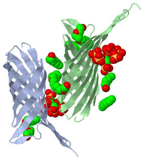 Asymmetric UnitChain A from PDB Type:PROTEIN Length:153 aligned with Q0WCZ9_YERPE | Q0WCZ9 from UniProtKB/TrEMBL Length:182 Alignment length:157 35 45 55 65 75 85 95 105 115 125 135 145 155 165 175 Q0WCZ9_YERPE 26 AEGESSISIGYAQSRVKEDGYKLDKNPRGFNLKYRYEFNNDWGVIGSFAQTRRGFEESVDGFKLIDGDFKYYSVTAGPVFRINEYVSLYGLLGAGHGKAKFSSIFGQSESRSKTSLAYGAGLQFNPHPNFVIDASYEYSKLDDVKVGTWMLGAGYRF 182 SCOP domains d3qrca_ A: automated matches SCOP domains CATH domains ------------------------------------------------------------------------------------------------------------------------------------------------------------- CATH domains Pfam domains ------------------------------------------------------------------------------------------------------------------------------------------------------------- Pfam domains SAPs(SNPs) ------------------------------------------------------------------------------------------------------------------------------------------------------------- SAPs(SNPs) PROSITE ------------------------------------------------------------------------------------------------------------------------------------------------------------- PROSITE Transcript ------------------------------------------------------------------------------------------------------------------------------------------------------------- Transcript 3qrc A 26 MEGESSISIGYAQSRVKEDGYKLDKNPRGFNLKYRYEFNNDWGVIGSFAQTRRGFEESV----LIDGDFKYYSVTAGPVFRINEYVSLYGLLGAGHGKAKFSSIFGQSESRSKTSLAYGAGLQFNPHPNFVIDASYEYSKLDDVKVGTWMLGAGYRF 182 35 45 55 65 75 |- | 95 105 115 125 135 145 155 165 175 84 89 Chain A from PDB Type:PROTEIN Length:153 aligned with Q8D0Z7_YERPE | Q8D0Z7 from UniProtKB/TrEMBL Length:194 Alignment length:157 47 57 67 77 87 97 107 117 127 137 147 157 167 177 187 Q8D0Z7_YERPE 38 AEGESSISIGYAQSRVKEDGYKLDKNPRGFNLKYRYEFNNDWGVIGSFAQTRRGFEESVDGFKLIDGDFKYYSVTAGPVFRINEYVSLYGLLGAGHGKAKFSSIFGQSESRSKTSLAYGAGLQFNPHPNFVIDASYEYSKLDDVKVGTWMLGAGYRF 194 SCOP domains d3qrca_ A: automated matches SCOP domains CATH domains ------------------------------------------------------------------------------------------------------------------------------------------------------------- CATH domains Pfam domains ------------------------------------------------------------------------------------------------------------------------------------------------------------- Pfam domains SAPs(SNPs) ------------------------------------------------------------------------------------------------------------------------------------------------------------- SAPs(SNPs) PROSITE ------------------------------------------------------------------------------------------------------------------------------------------------------------- PROSITE Transcript ------------------------------------------------------------------------------------------------------------------------------------------------------------- Transcript 3qrc A 26 MEGESSISIGYAQSRVKEDGYKLDKNPRGFNLKYRYEFNNDWGVIGSFAQTRRGFEESV----LIDGDFKYYSVTAGPVFRINEYVSLYGLLGAGHGKAKFSSIFGQSESRSKTSLAYGAGLQFNPHPNFVIDASYEYSKLDDVKVGTWMLGAGYRF 182 35 45 55 65 75 |- | 95 105 115 125 135 145 155 165 175 84 89 Chain B from PDB Type:PROTEIN Length:154 aligned with Q0WCZ9_YERPE | Q0WCZ9 from UniProtKB/TrEMBL Length:182 Alignment length:157 35 45 55 65 75 85 95 105 115 125 135 145 155 165 175 Q0WCZ9_YERPE 26 AEGESSISIGYAQSRVKEDGYKLDKNPRGFNLKYRYEFNNDWGVIGSFAQTRRGFEESVDGFKLIDGDFKYYSVTAGPVFRINEYVSLYGLLGAGHGKAKFSSIFGQSESRSKTSLAYGAGLQFNPHPNFVIDASYEYSKLDDVKVGTWMLGAGYRF 182 SCOP domains d3qrcb_ B: automated matches SCOP domains CATH domains ------------------------------------------------------------------------------------------------------------------------------------------------------------- CATH domains Pfam domains ------------------------------------------------------------------------------------------------------------------------------------------------------------- Pfam domains SAPs(SNPs) ------------------------------------------------------------------------------------------------------------------------------------------------------------- SAPs(SNPs) PROSITE ------------------------------------------------------------------------------------------------------------------------------------------------------------- PROSITE Transcript ------------------------------------------------------------------------------------------------------------------------------------------------------------- Transcript 3qrc B 26 MEGESSISIGYAQSRVKEDGYKLDKNPRGFNLKYRYEFNNDWGVIGSFAQTRRGFEESVD---LIDGDFKYYSVTAGPVFRINEYVSLYGLLGAGHGKAKFSSIFGQSESRSKTSLAYGAGLQFNPHPNFVIDASYEYSKLDDVKVGTWMLGAGYRF 182 35 45 55 65 75 85 | 95 105 115 125 135 145 155 165 175 85 89 Chain B from PDB Type:PROTEIN Length:154 aligned with Q8D0Z7_YERPE | Q8D0Z7 from UniProtKB/TrEMBL Length:194 Alignment length:157 47 57 67 77 87 97 107 117 127 137 147 157 167 177 187 Q8D0Z7_YERPE 38 AEGESSISIGYAQSRVKEDGYKLDKNPRGFNLKYRYEFNNDWGVIGSFAQTRRGFEESVDGFKLIDGDFKYYSVTAGPVFRINEYVSLYGLLGAGHGKAKFSSIFGQSESRSKTSLAYGAGLQFNPHPNFVIDASYEYSKLDDVKVGTWMLGAGYRF 194 SCOP domains d3qrcb_ B: automated matches SCOP domains CATH domains ------------------------------------------------------------------------------------------------------------------------------------------------------------- CATH domains Pfam domains ------------------------------------------------------------------------------------------------------------------------------------------------------------- Pfam domains SAPs(SNPs) ------------------------------------------------------------------------------------------------------------------------------------------------------------- SAPs(SNPs) PROSITE ------------------------------------------------------------------------------------------------------------------------------------------------------------- PROSITE Transcript ------------------------------------------------------------------------------------------------------------------------------------------------------------- Transcript 3qrc B 26 ME