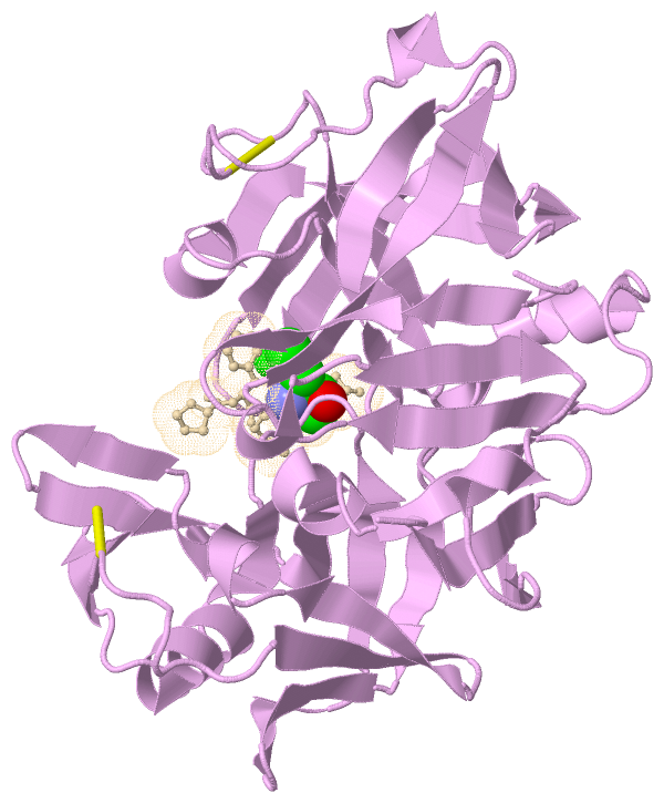 Asymmetric/Biological UnitChain E from PDB Type:PROTEIN Length:325 aligned with CARP_RHICH | P06026 from UniProtKB/Swiss-Prot Length:393 Alignment length:325 78 88 98 108 118 128 138 148 158 168 178 188 198 208 218 228 238 248 258 268 278 288 298 308 318 328 338 348 358 368 378 388 CARP_RHICH 69 AGVGTVPMTDYGNDVEYYGQVTIGTPGKKFNLDFDTGSSDLWIASTLCTNCGSRQTKYDPKQSSTYQADGRTWSISYGDGSSASGILAKDNVNLGGLLIKGQTIELAKREAASFANGPNDGLLGLGFDTITTVRGVKTPMDNLISQGLISRPIFGVYLGKASNGGGGEYIFGGYDSTKFKGSLTTVPIDNSRGWWGITVDRATVGTSTVASSFDGILDTGTTLLILPNNVAASVARAYGASDNGDGTYTISCDTSRFKPLVFSINGASFQVSPDSLVFEEYQGQCIAGFGYGNFDFAIIGDTFLKNNYVVFNQGVPEVQIAPVAQ 393 SCOP domains d4apre_ E: Acid protease SCOP domains CATH domains -----4aprE01 E:6-174 Acid Proteases 4aprE02 E:175-323 Acid Proteases -- CATH domains Pfam domains ------------------------------------------------------------------------------------------------------------------------------------------------------------------------------------------------------------------------------------------------------------------------------------------------------------------------------------- Pfam domains SAPs(SNPs) --------------I---------------------------------------------N------------------------------------------------------S---------------------------------------------K-------------------------------------------------------------------I----------Y---------------------------------------------------D-------------------------------E SAPs(SNPs) PROSITE (1) ----------------PEPTIDASE_A1 PDB: E:17-321 UniProt: 85-389 ---- PROSITE (1) PROSITE (2) -------------------------------ASP_PROTEASE---------------------------------------------------------------------------------------------------------------------------------------------------------------------------ASP_PROTEASE--------------------------------------------------------------------------------------------------- PROSITE (2) Transcript ------------------------------------------------------------------------------------------------------------------------------------------------------------------------------------------------------------------------------------------------------------------------------------------------------------------------------------- Transcript 4apr E 1 AGVGTVPMTDYGNDIEYYGQVTIGTPGKKFNLDFDTGSSDLWIASTLCTNCGSGQTKYDPNQSSTYQADGRTWSISYGDGSSASGILAKDNVNLGGLLIKGQTIELAKREAASFASGPNDGLLGLGFDTITTVRGVKTPMDNLISQGLISRPIFGVYLGKAKNGGGGEYIFGGYDSTKFKGSLTTVPIDNSRGWWGITVDRATVGTSTVASSFDGILDTGTTLLILPNNIAASVARAYGASDNGDGTYTISCDTSAFKPLVFSINGASFQVSPDSLVFEEFQGQCIAGFGYGNWGFAIIGDTFLKNNYVVFNQGVPEVQIAPVAE 325 10 20 30 40 50 60 70 80 90 100 110 120 130 140 150 160 170 180 190 200 210 220 230 240 250 260 270 280 290 300 310 320