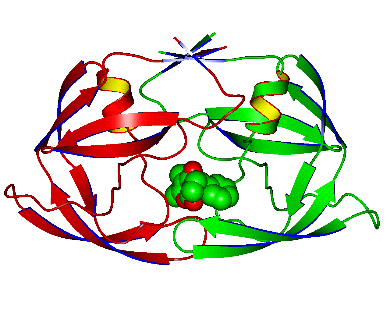 SCOP domains d6upja_ A: Human immunodeficiency virus type 2 (HIV-2) protease SCOP domains