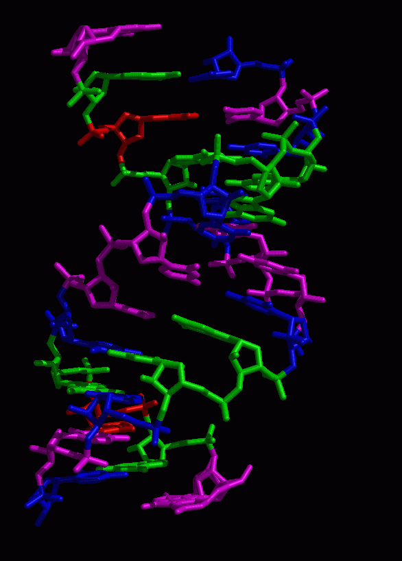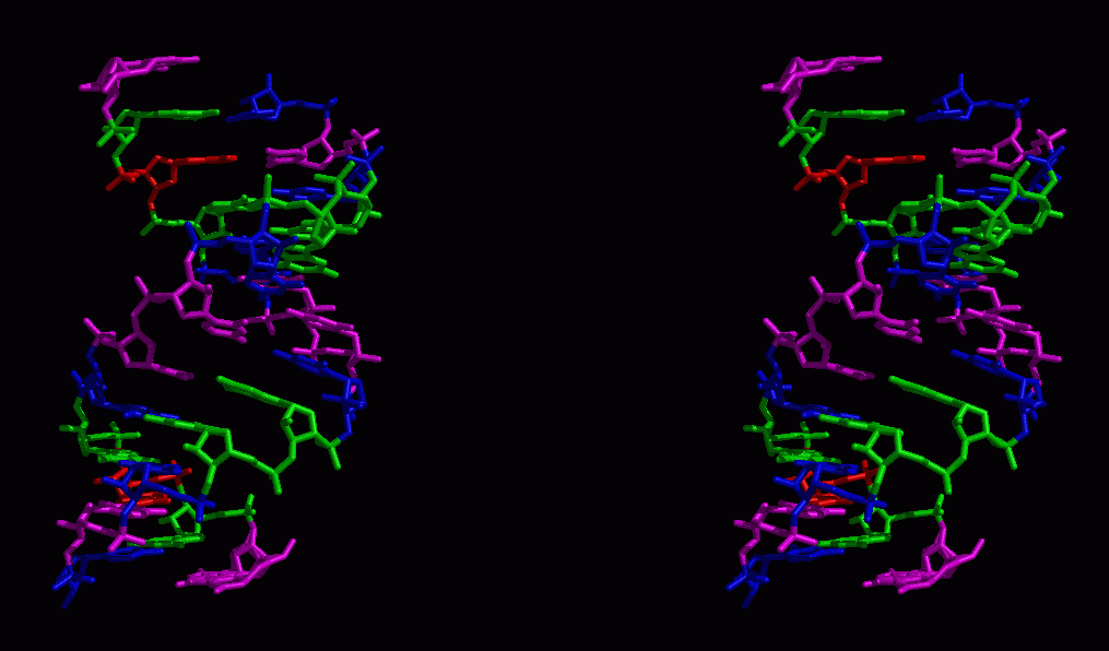 For structure entries of this type additional visual information is available. As an example the entry page of an RNA double helix structure is shown. Follow this link to see the complete entry page. In Figure 2 the various visualization types used for this structure are displayed. Again links to all molecular graphics programs used can be found on the IMB Jena Image Library entry page.