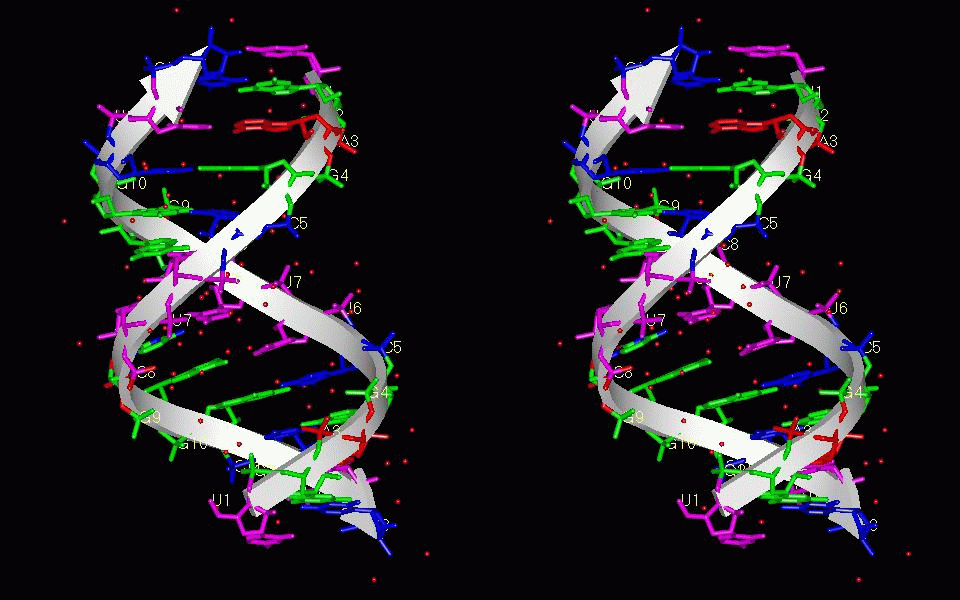 information for an RNA double helix structure (PDB code: 413d, NDB code: ar0005).