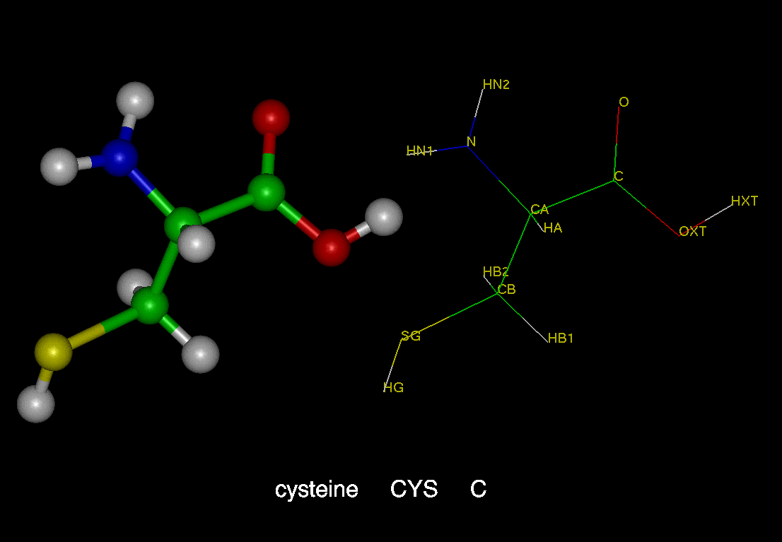 The Amino Acid Repository compiles information on the properties of individual amino acids and of amino acids in proteins. In Figure 6 an image of cysteine is shown.